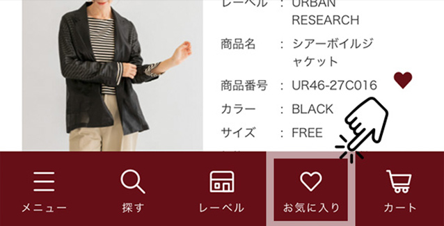 商品ページや検索結果ページに表示されているハートマークを押すと、「お気に入り」に登録されます。