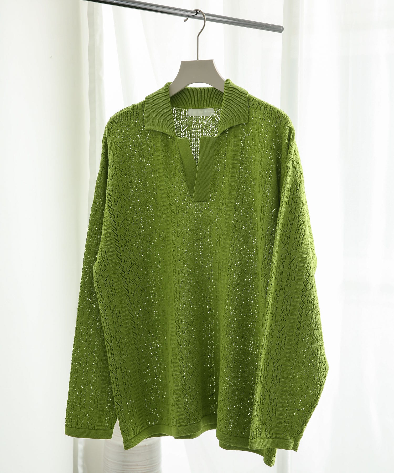 上品なデザインとレース編みのデザインニットポロ