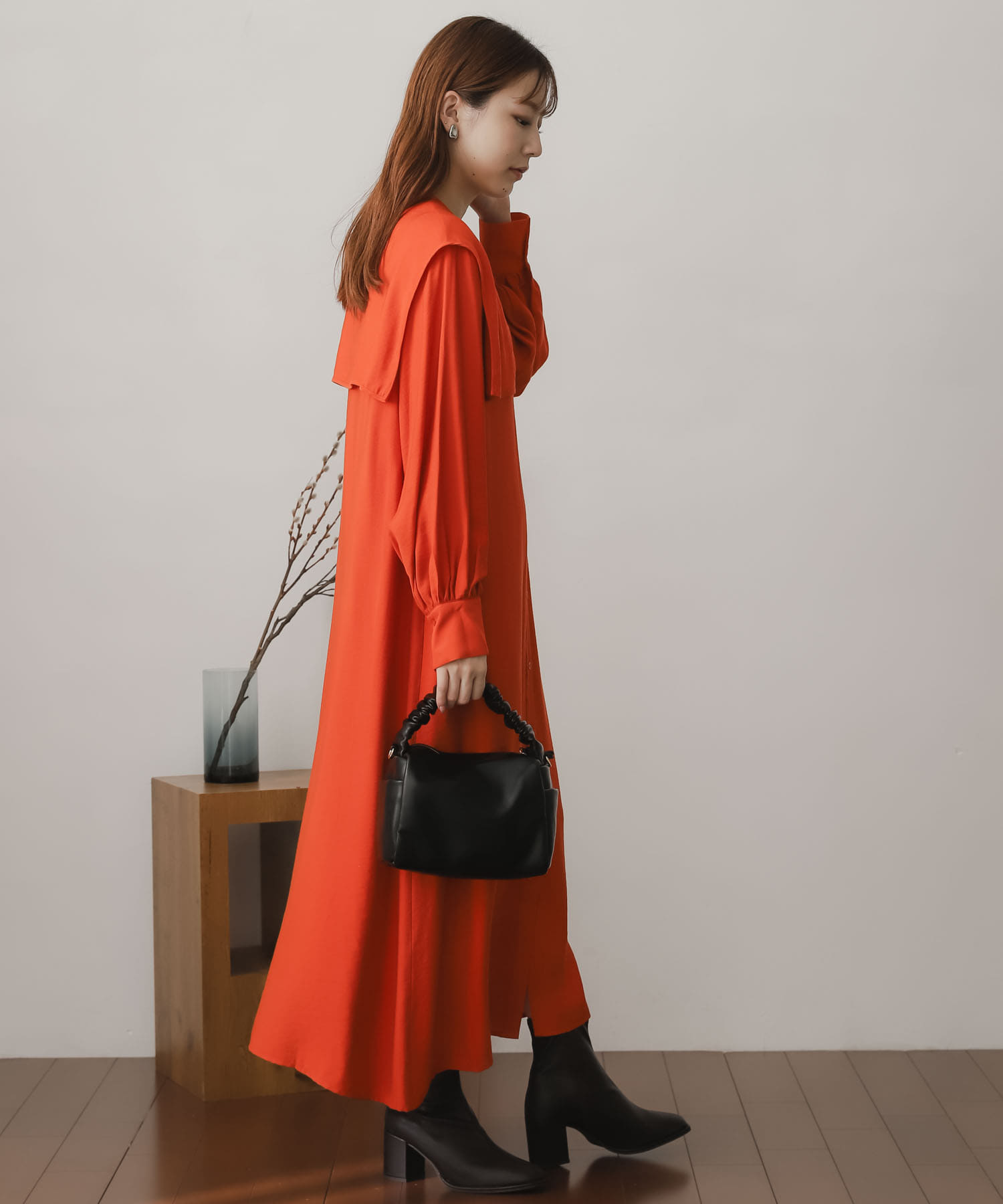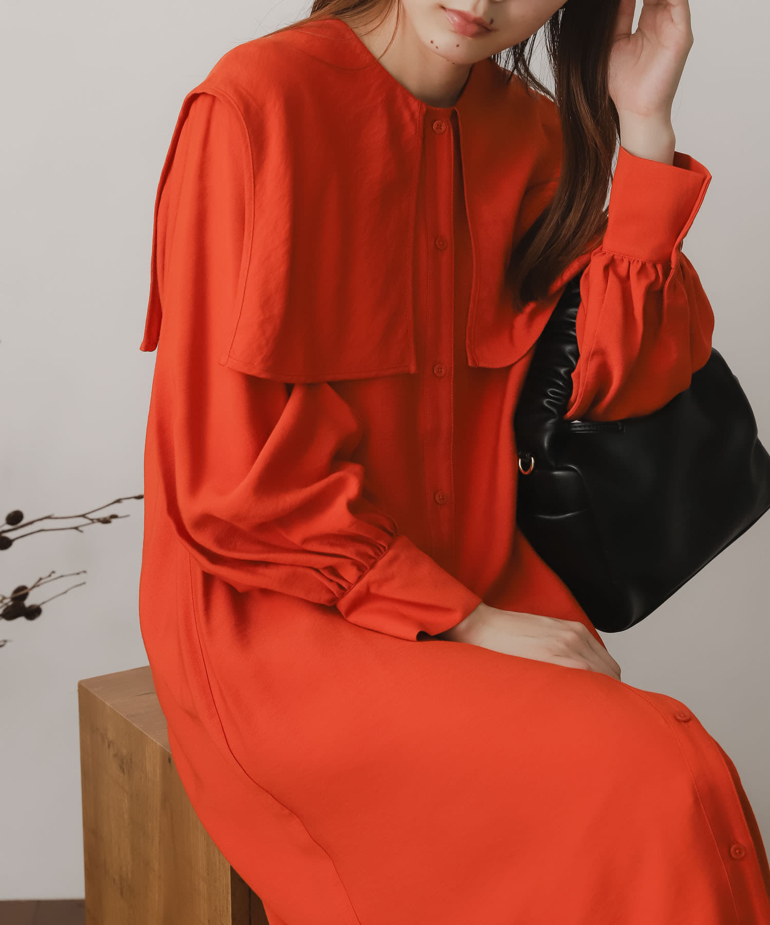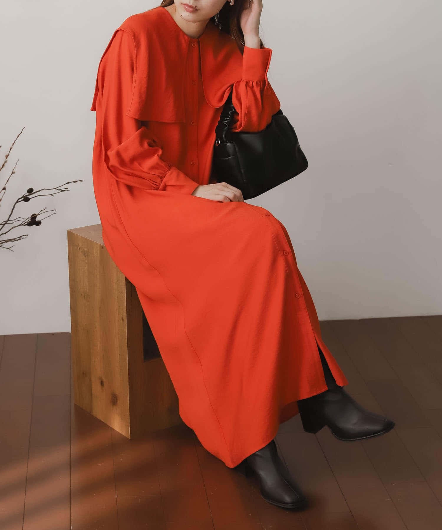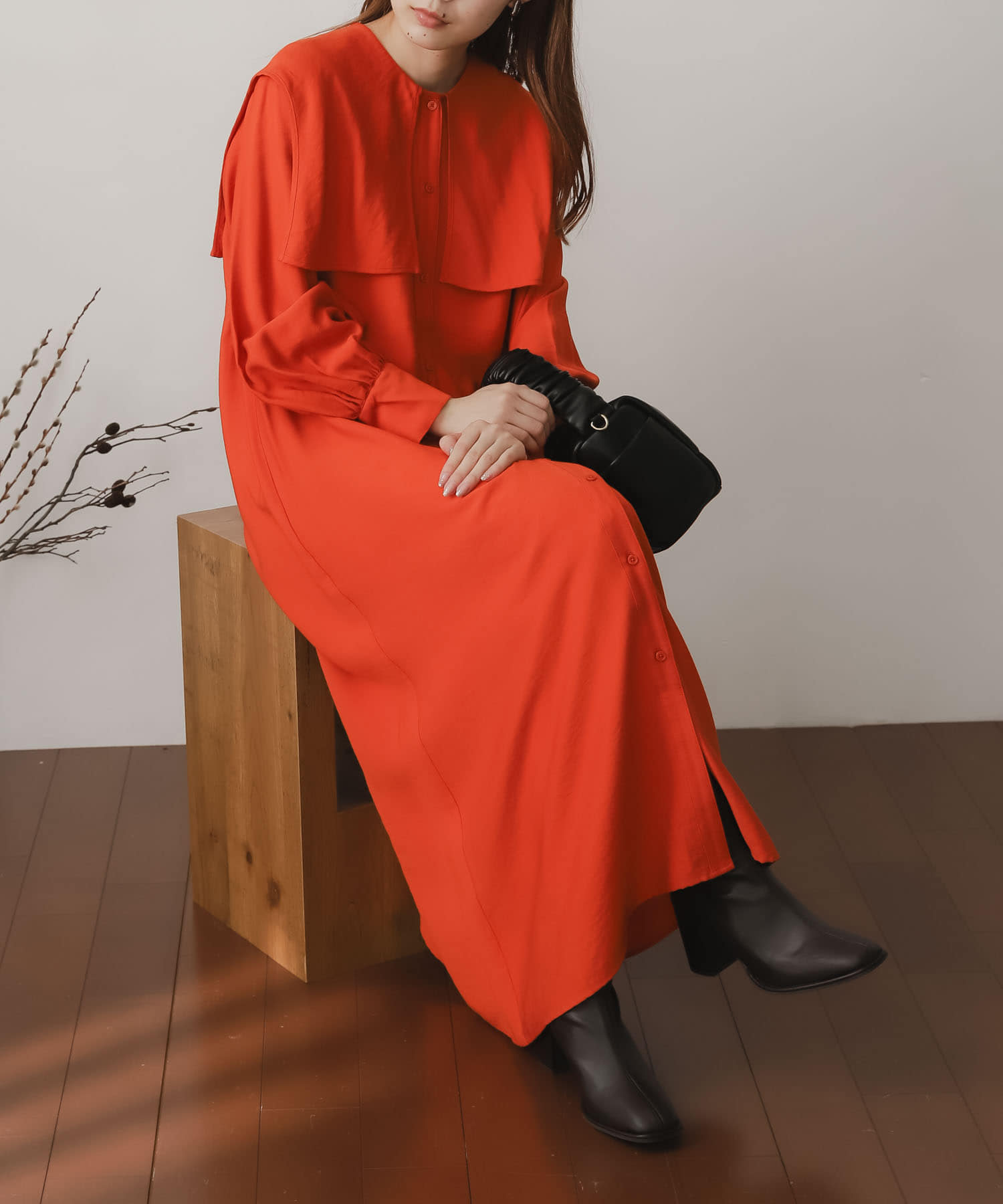トレンドのスクエアカラーがポイントのデザインワンピース