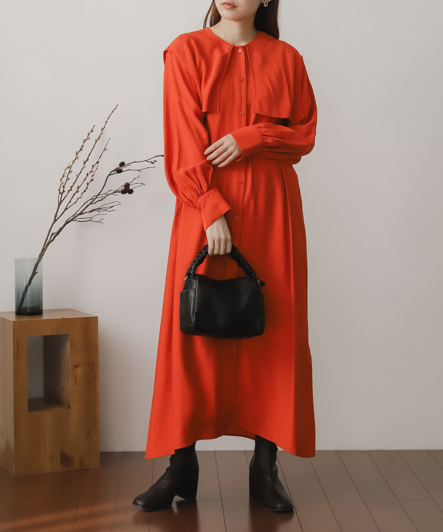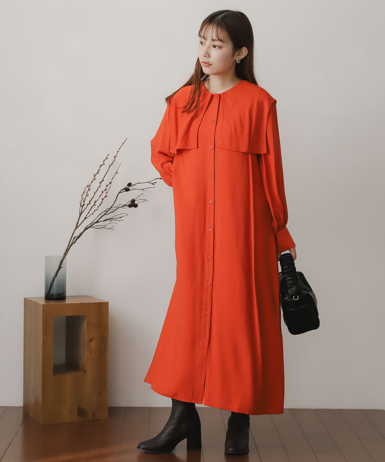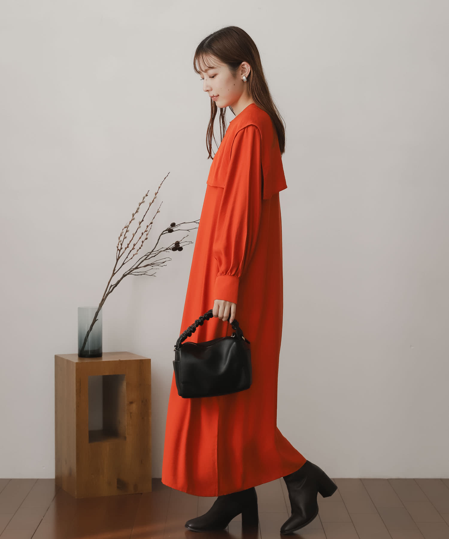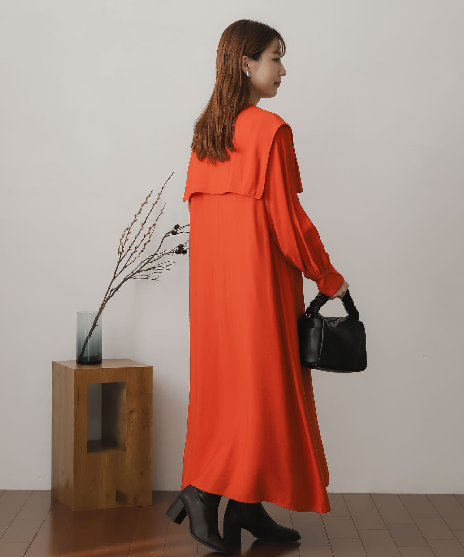 トレンドのスクエアカラーがポイントのデザインワンピース