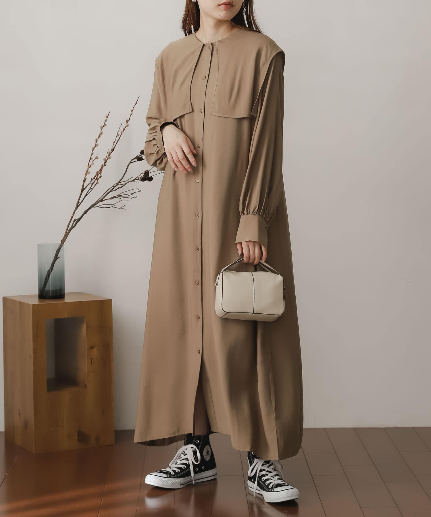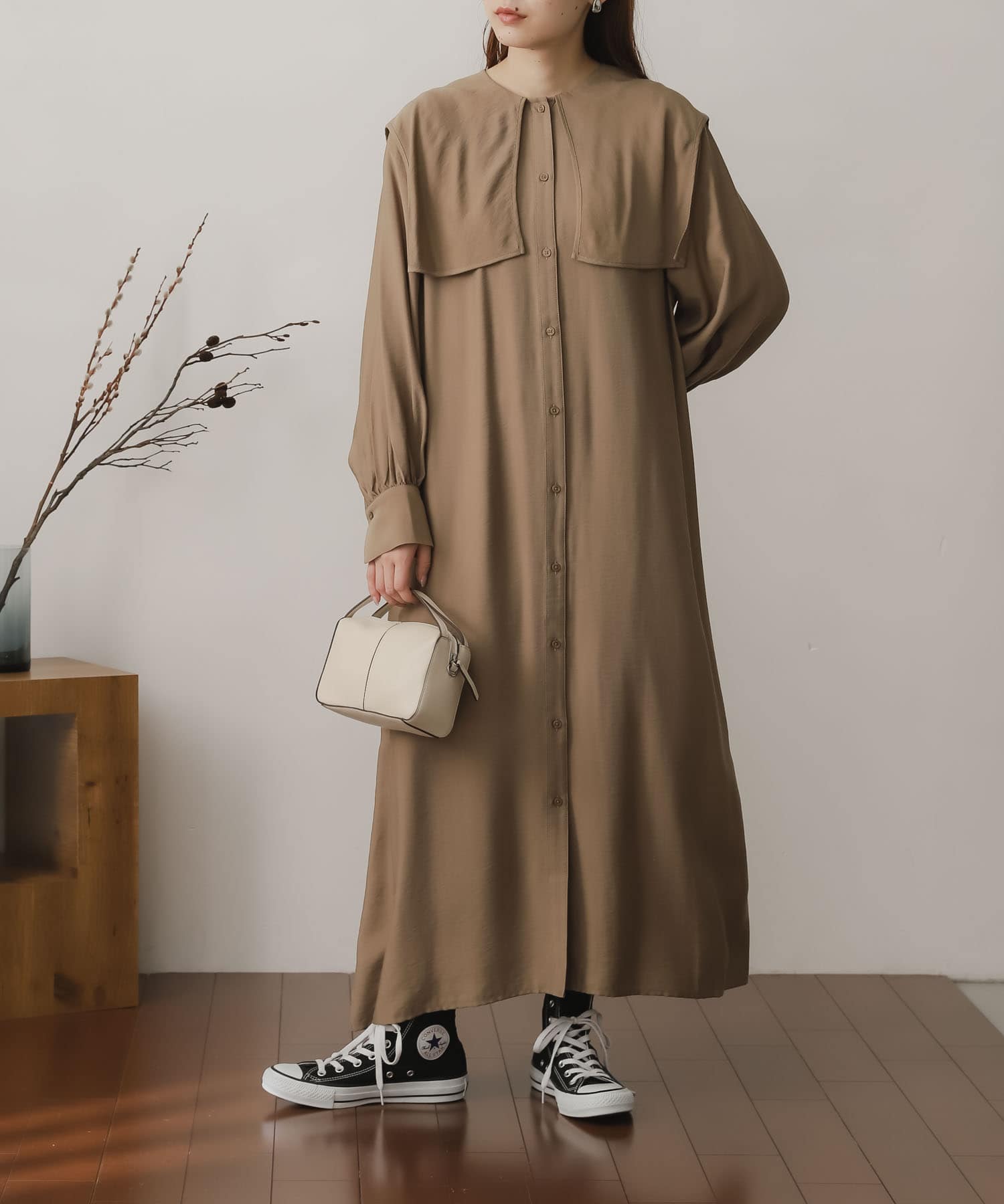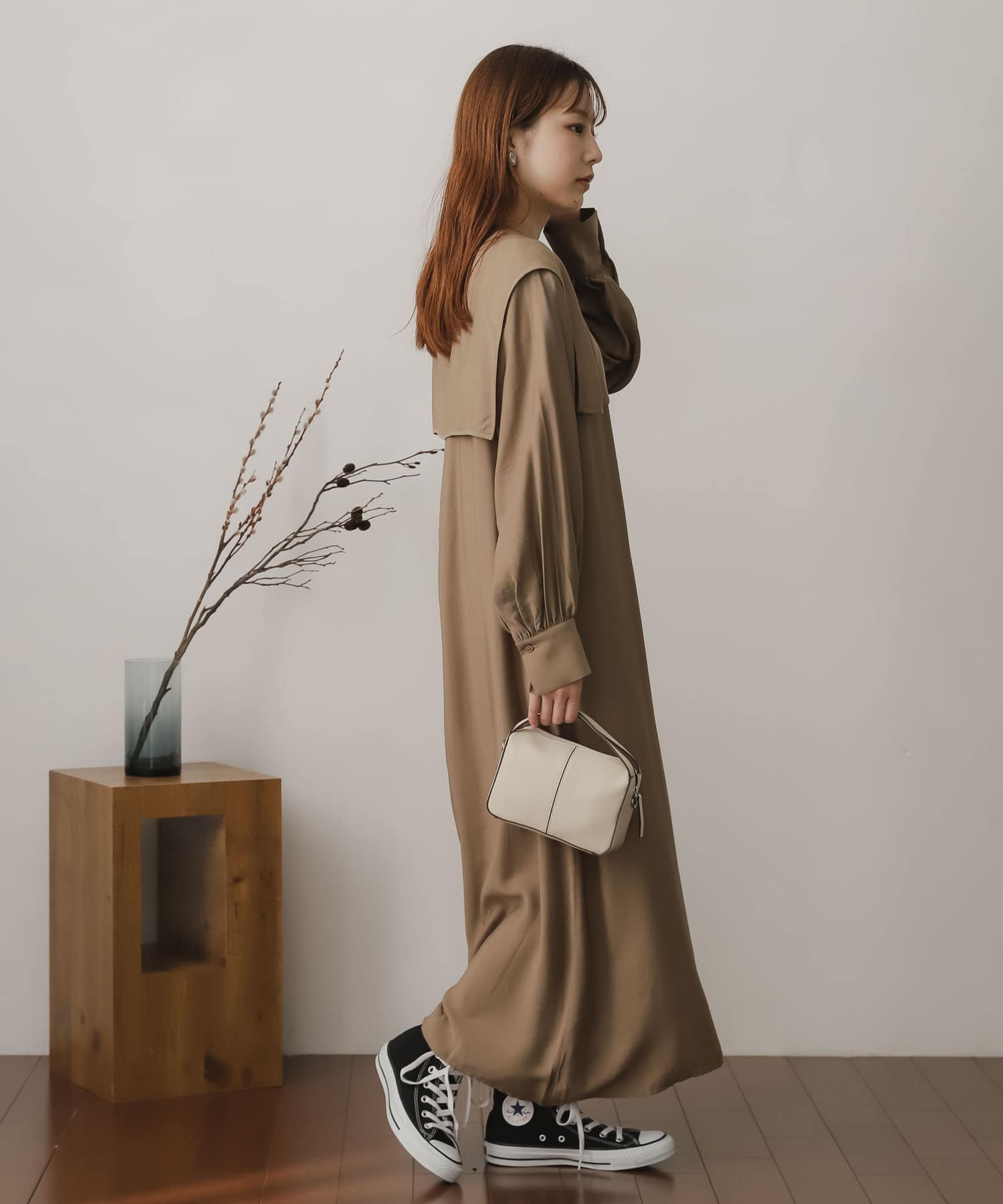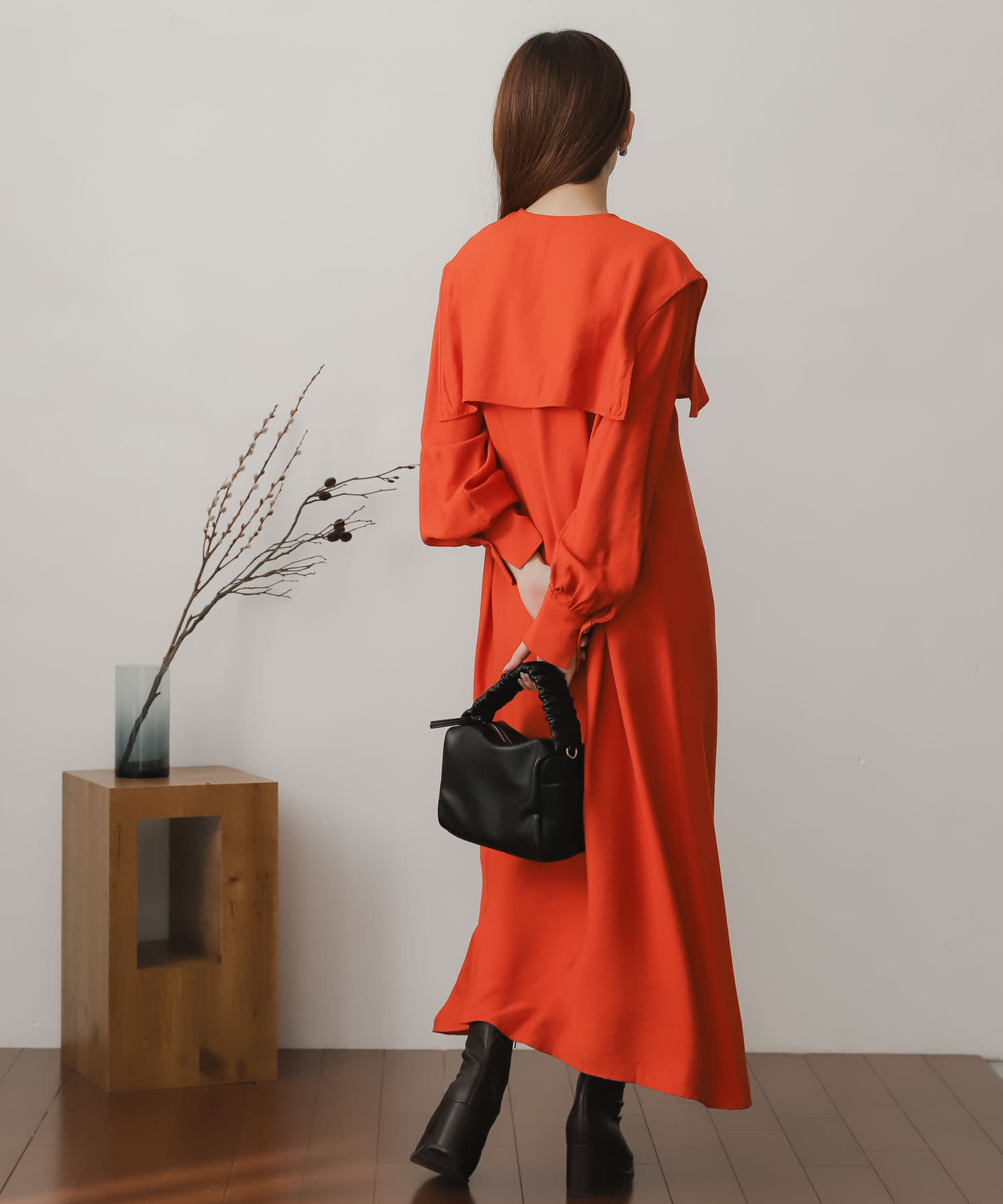 トレンドのスクエアカラーがポイントのデザインワンピース