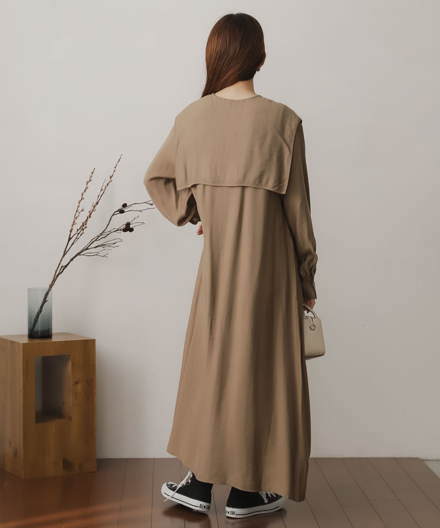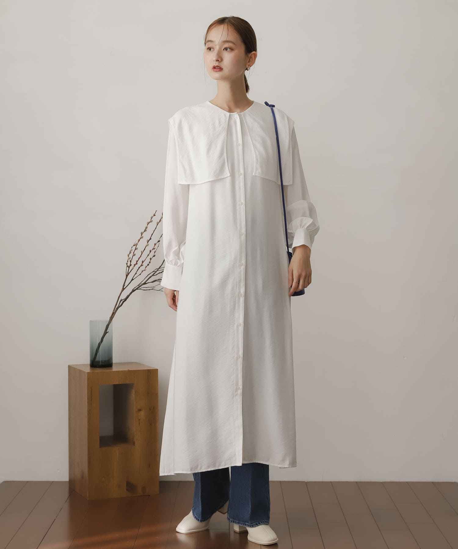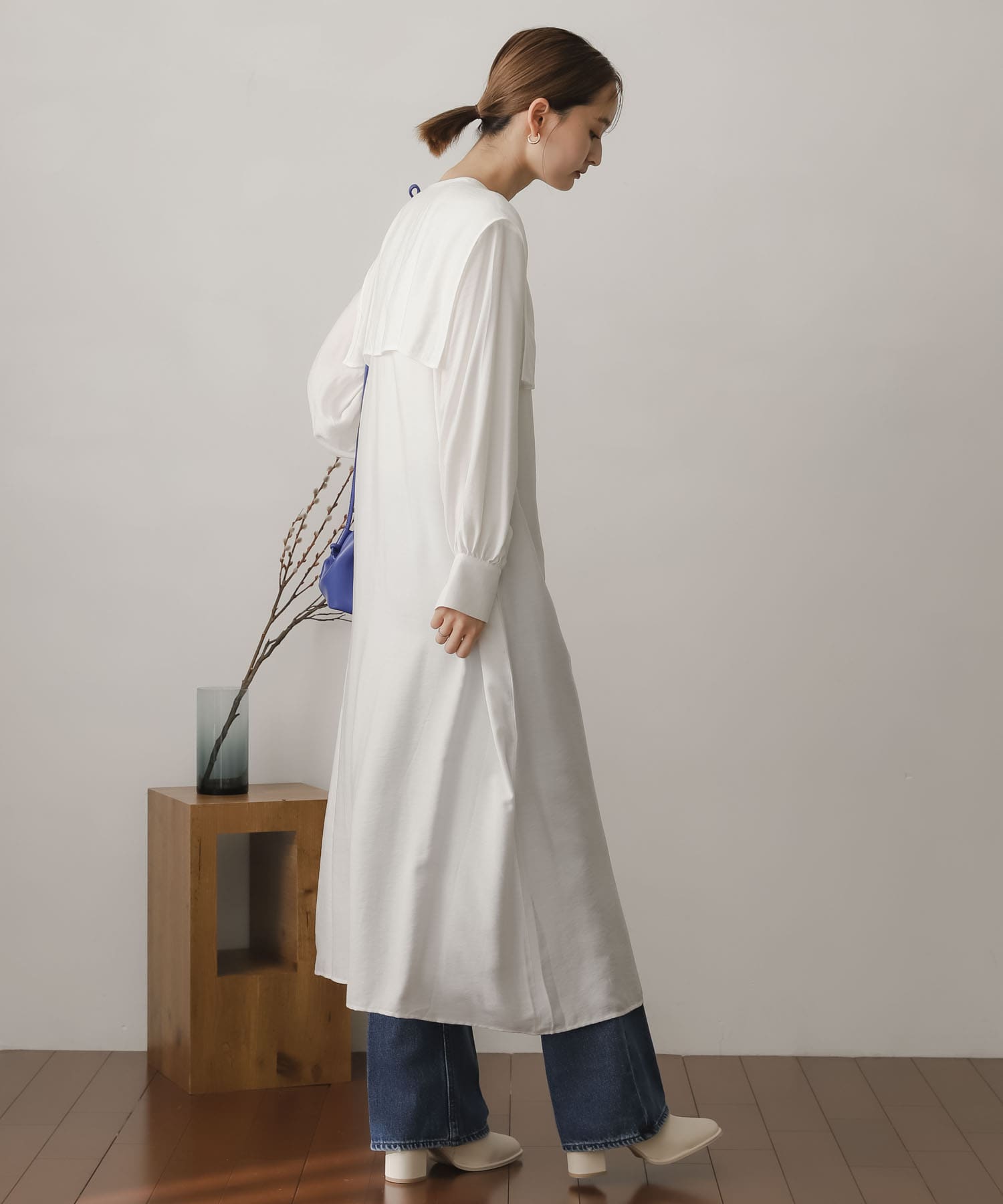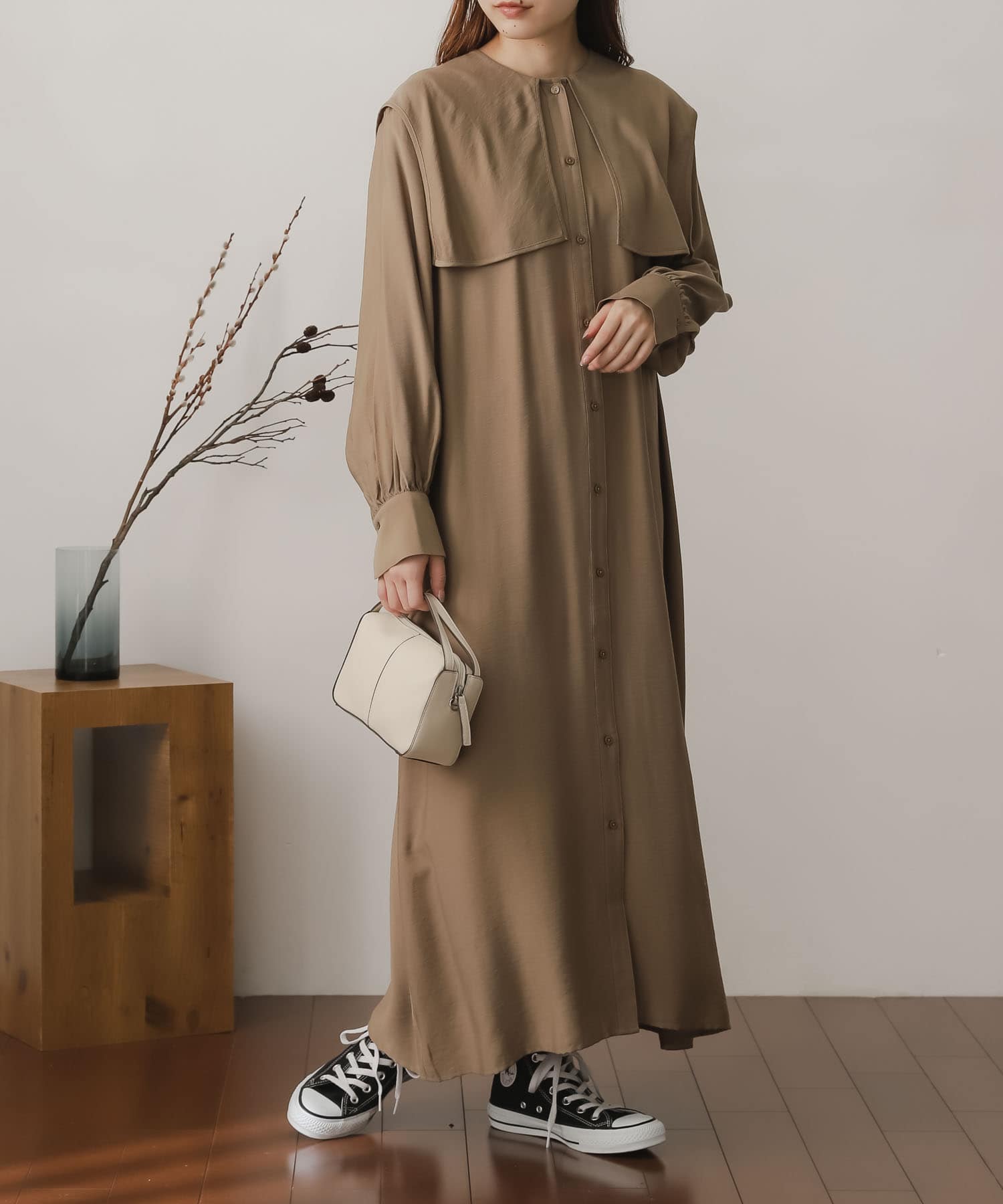 トレンドのスクエアカラーがポイントのデザインワンピース