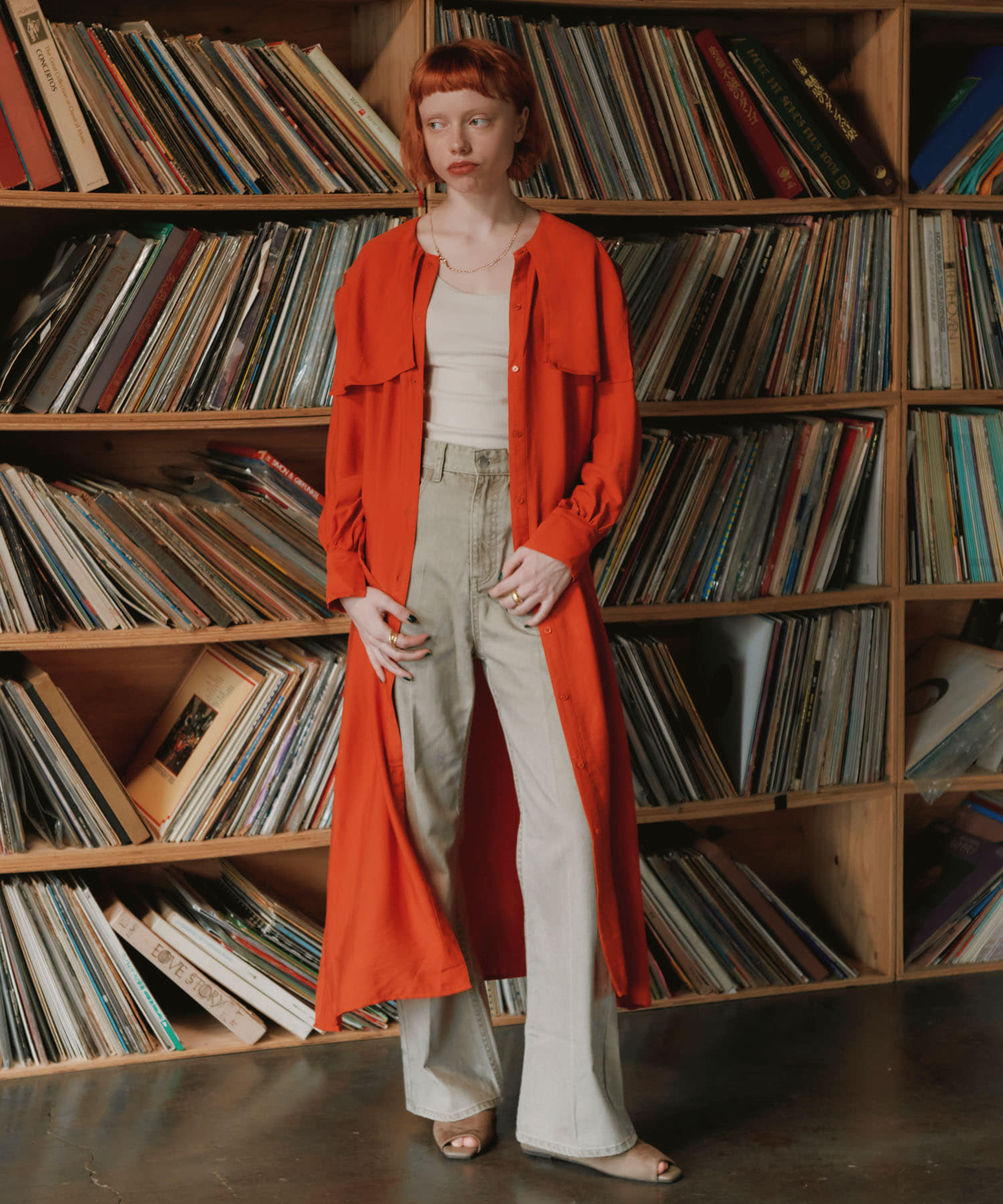 透け感があるのでインナーを着ていただくか、カラーパンツなどとレイヤードしていただくのがオススメです。オレンジなどはデニムと合わせても色味が可愛いです。