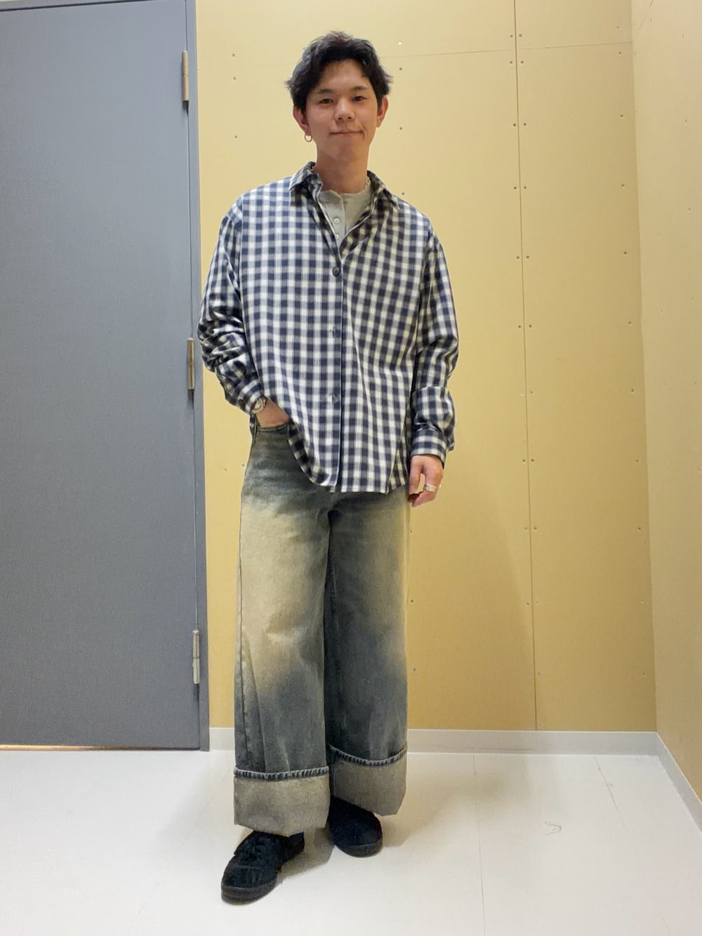 今の時期なら、襟付きカーディガンやデニムブルゾンのインナーとして、首元のボタンを覗かせるレイヤードスタイルがおすすめです。ボトムスにはブラスト加工のワイドデニムを合わせてヴィンテージライクにまとめたり、ダブルタックテーパードパンツでクリーンに引き締めたりと、幅広いスタイルに馴染みます。暖かくなってきたら一枚でさらりと着こなし、カーゴパンツなどボリュームのあるボトムスと合わせるだけで、洗練された春のカジュアルスタイルが完成します。