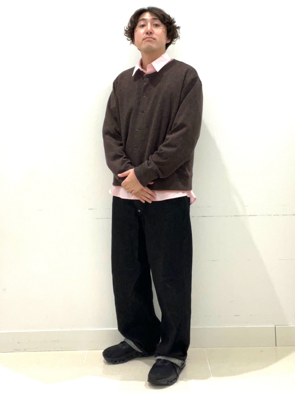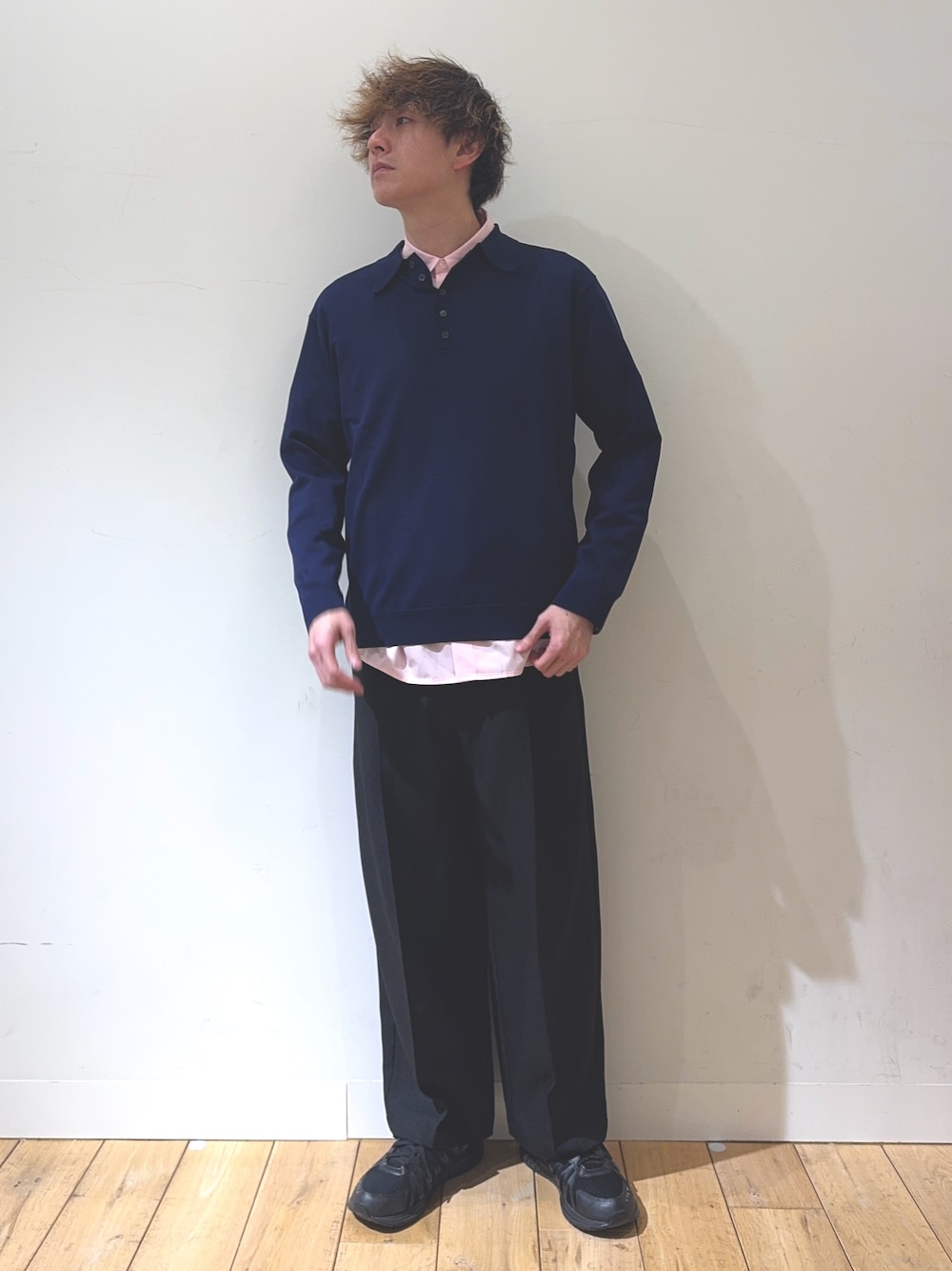 今の時期なら、Vネックの起毛プルオーバーやニットフリースの下に重ねて、襟元や裾を覗かせるレイヤードスタイルがおすすめです。ボトムスにブラスト加工のワイドデニムやダブルタックパンツを合わせれば、重たくなりがちな冬の装いに軽やかさが加わります。暖かくなってきたら、袖を軽くロールアップして抜け感を出し、羽織りスタイルで軽快に着こなすのがおすすめです。