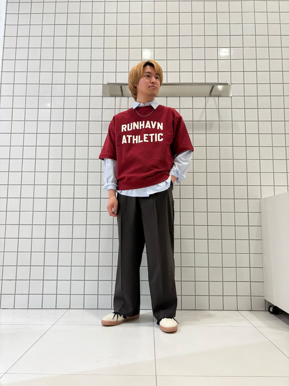 今の時期なら、Vネックの起毛プルオーバーやニットフリースの下に重ねて、襟元や裾を覗かせるレイヤードスタイルがおすすめです。ボトムスにブラスト加工のワイドデニムやダブルタックパンツを合わせれば、重たくなりがちな冬の装いに軽やかさが加わります。暖かくなってきたら、袖を軽くロールアップして抜け感を出し、羽織りスタイルで軽快に着こなすのがおすすめです。