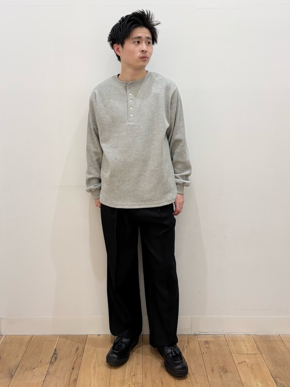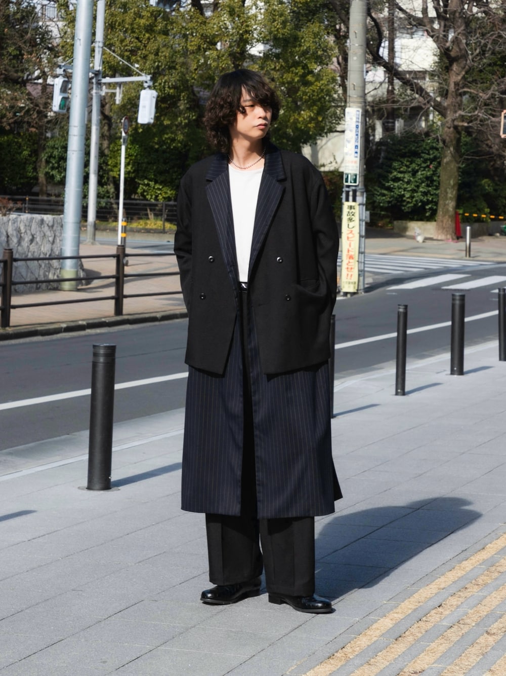 ・同素材のジャケットやブルゾンとのセットアップで着用が可能。日常のカジュアルスタイルから、少し背筋を伸ばしたい日の装いまで、シーンを選ばずスマートに寄り添う一着です。