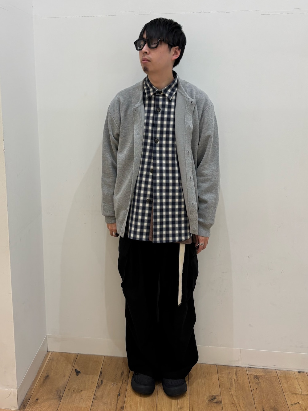 ・ドレープ性のある素材と、無骨なイメージのカーゴパンツがベストマッチ。カジュアルすぎず、どこか都会的で洗練された印象を与えます。