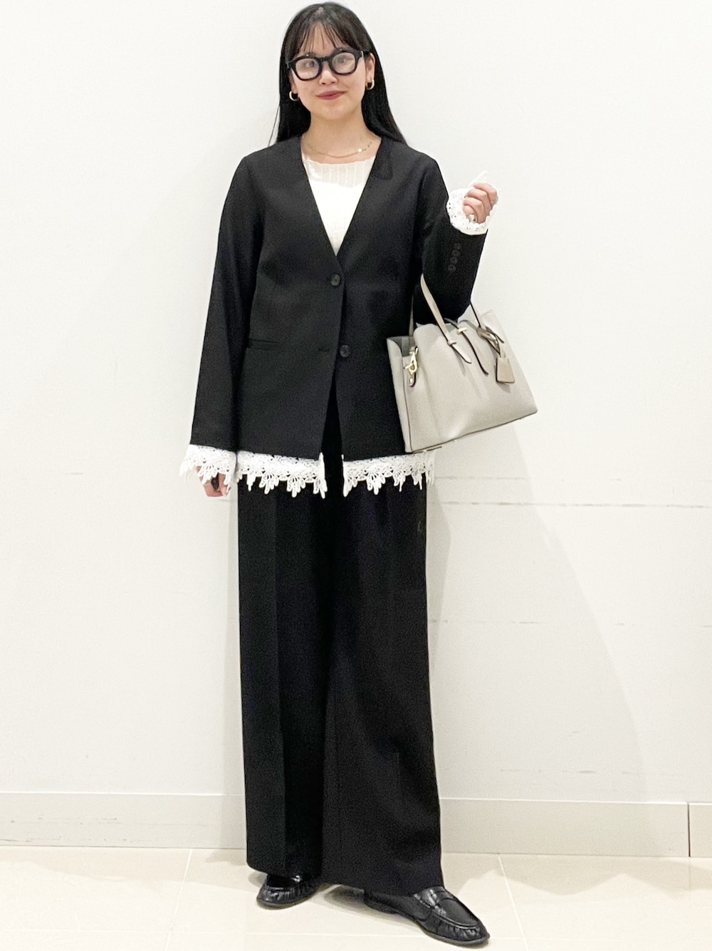 レースレイヤードノーカラージャケット