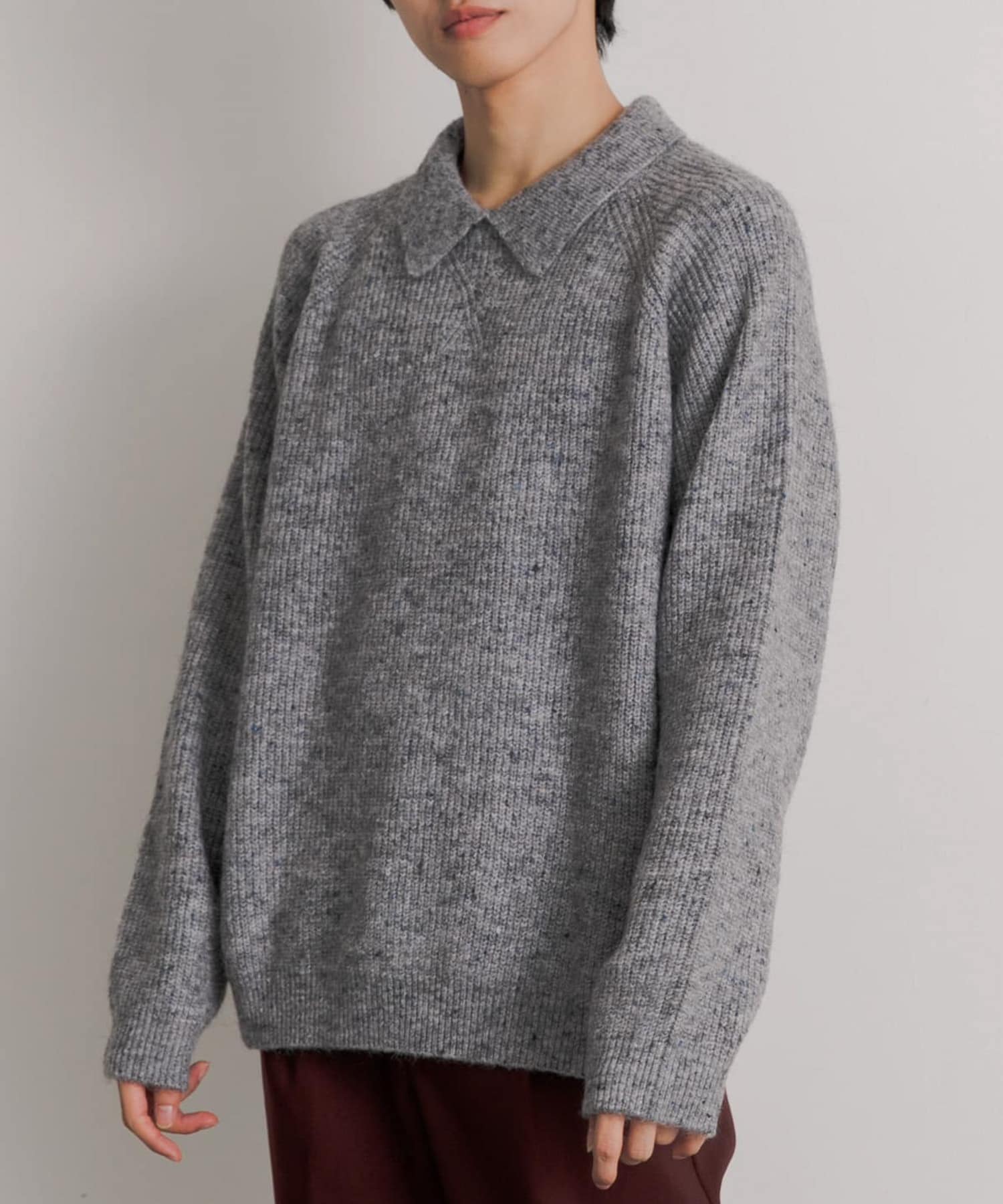 カラーネップがさりげなくアクセントになる衿付きセーター