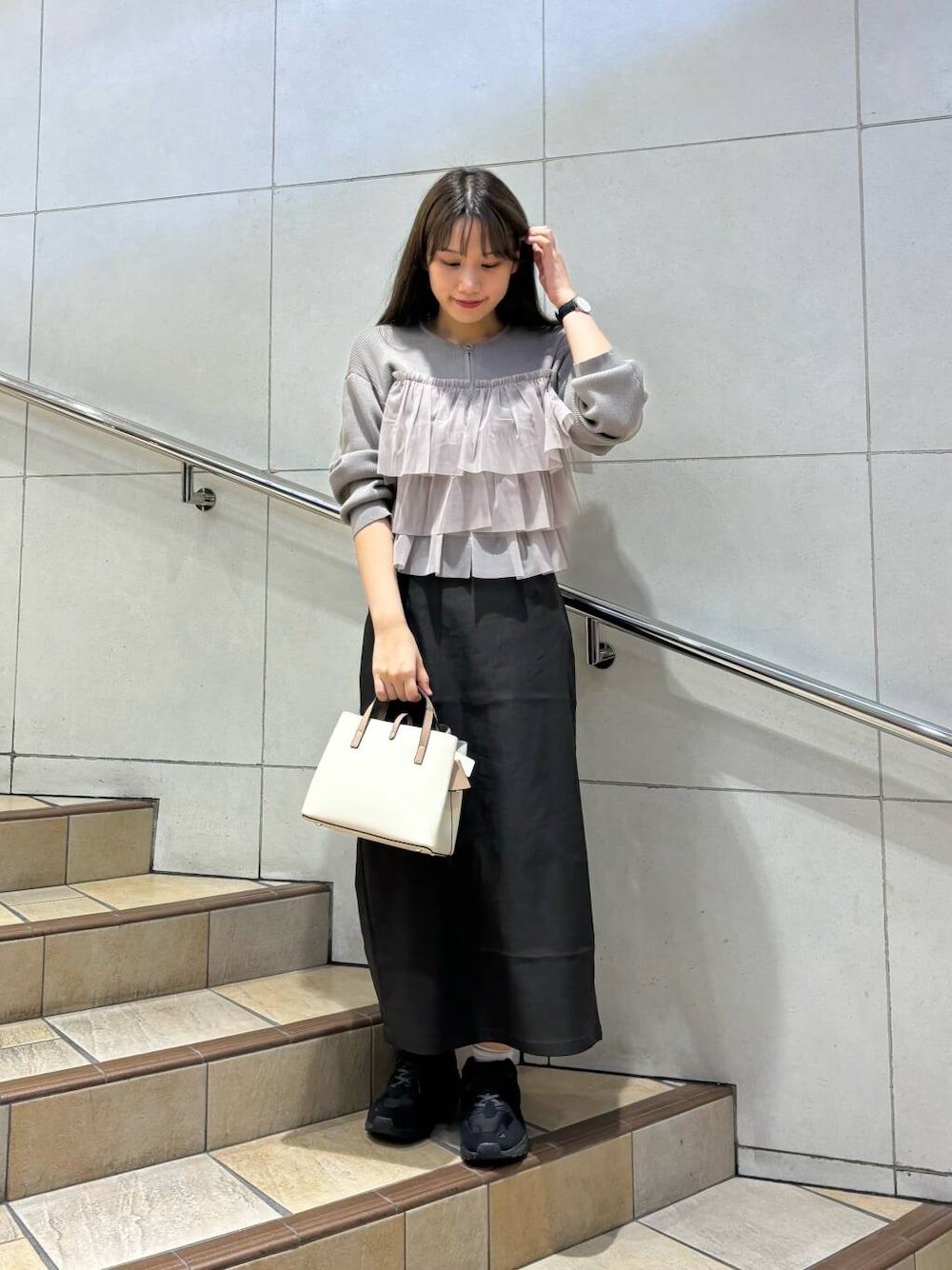 秋大人気だったフリルニットを冬仕様にアップデート。一枚で着映えするアイテムです。シンプルなボトムやデニムでも、キャミワンピースの羽織などにもおすすめです。フリルのボリュームはありますが柔らかい素材なのでジャケットの中にも着込めます。