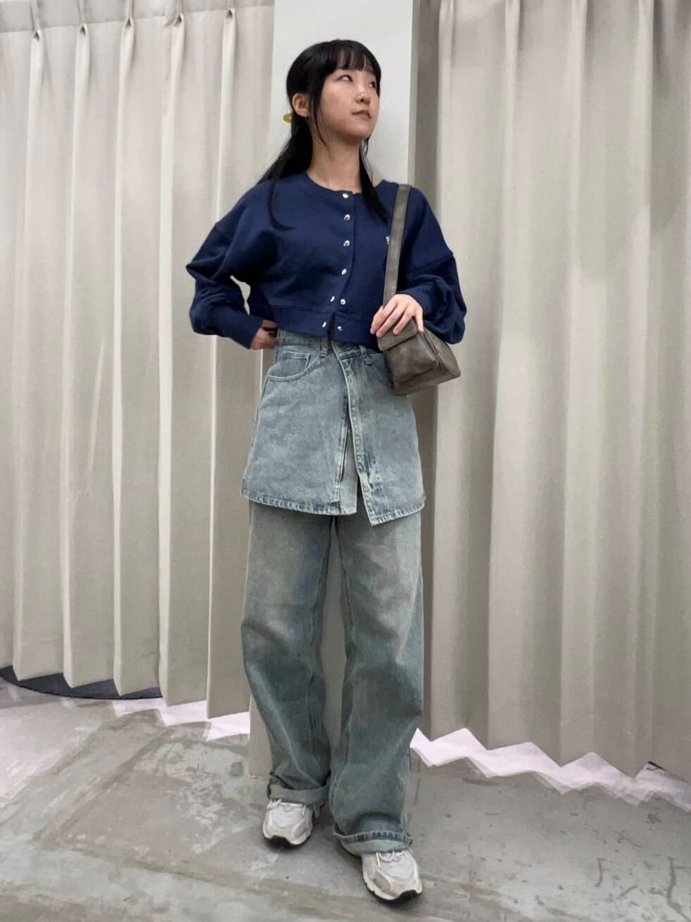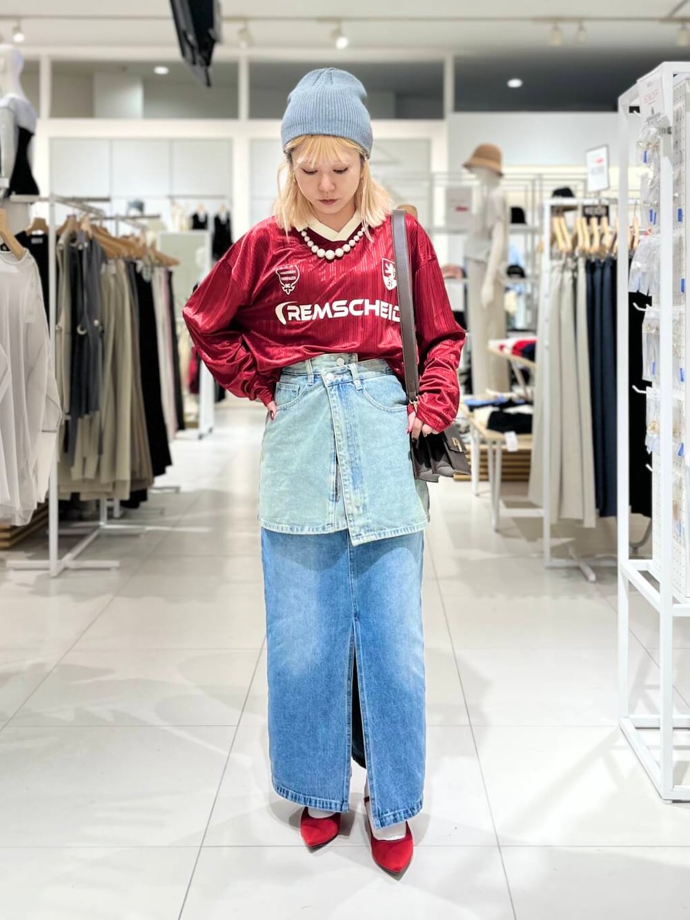 〇パンツの上にレイヤードしても着れる仕様になっているので、色々なスタイリングを楽しめます。