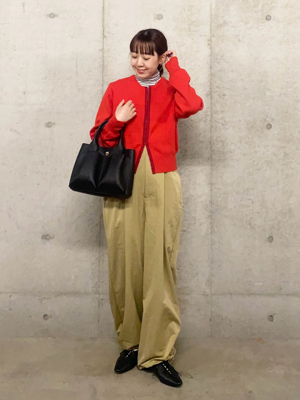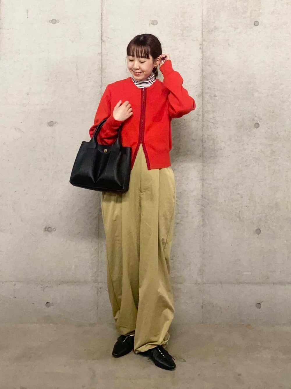 〇ゆったりワイドパンツでハイウエスト脚長効果抜群