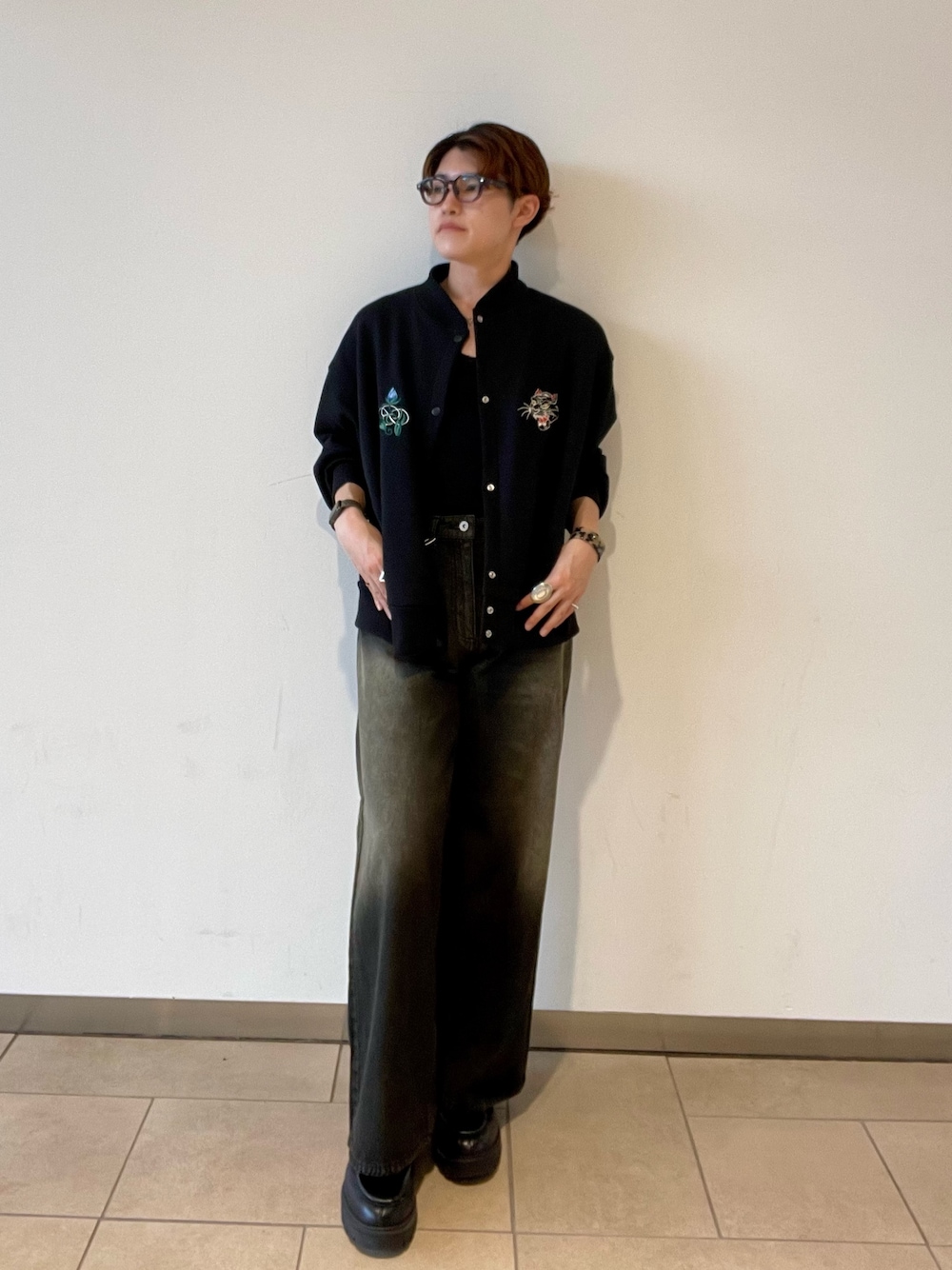 デニムと合わせたヴィンテージスタイルはもちろんですが、スラックスと合わせたクリーンなコーディネートもおすすめです。テーパードシルエットよりもワイドやフレアシルエットのパンツと相性がよいです。
