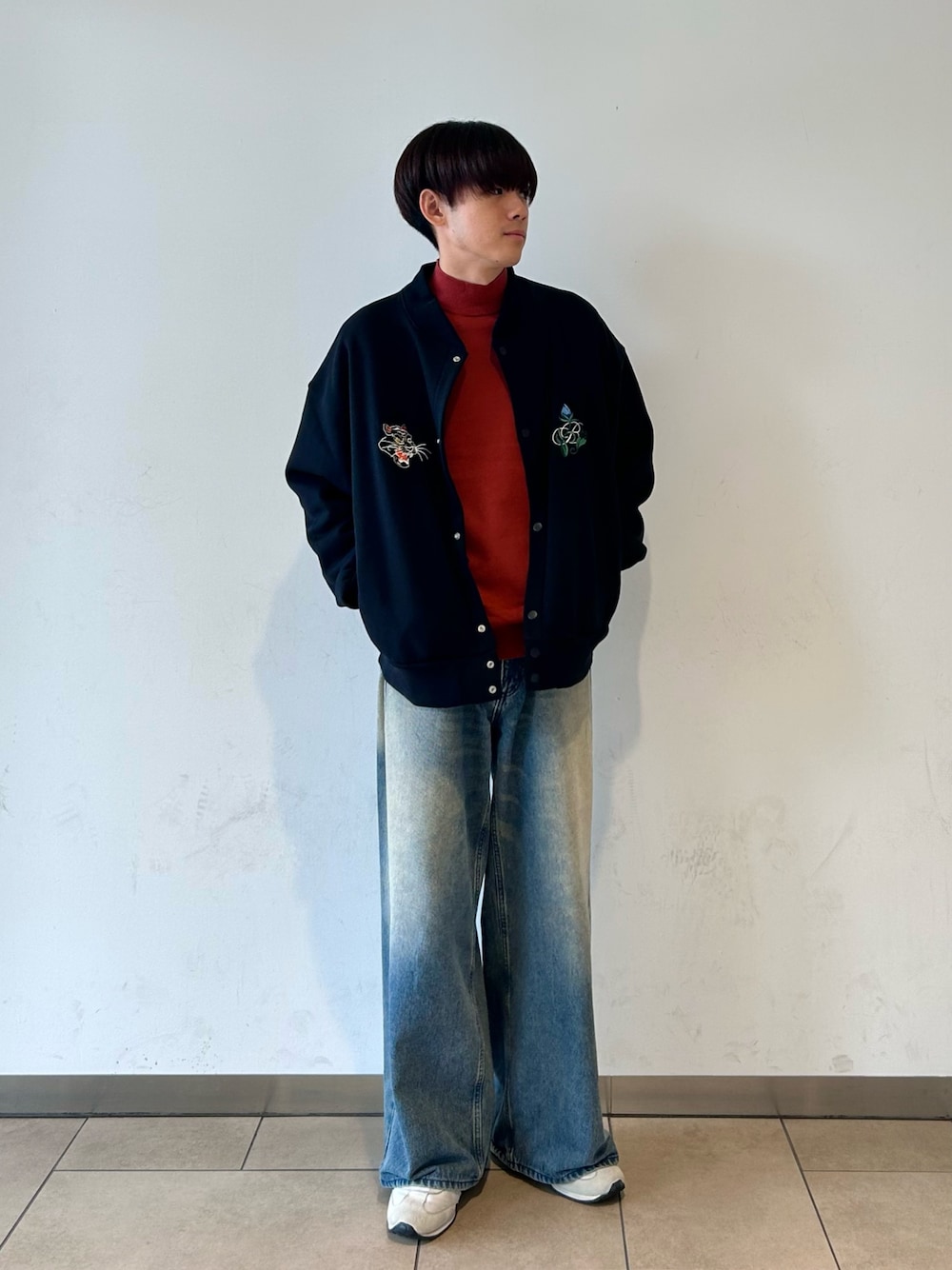 デニムと合わせたヴィンテージスタイルはもちろんですが、スラックスと合わせたクリーンなコーディネートもおすすめです。テーパードシルエットよりもワイドやフレアシルエットのパンツと相性がよいです。