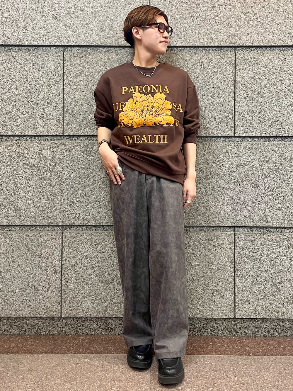 カジュアルなデニムやカーゴパンツ、きれいめなスラックスとの相性も抜群です。シルエットはテーパードよりもワイドやフレアと合わせていただくのがおすすめです。暗くなりがちな冬の着こなしのインナーのアクセントに活躍してくれます。