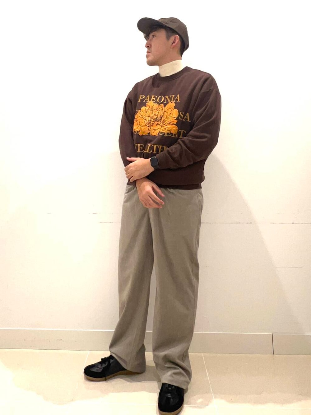 カジュアルなデニムやカーゴパンツ、きれいめなスラックスとの相性も抜群です。シルエットはテーパードよりもワイドやフレアと合わせていただくのがおすすめです。暗くなりがちな冬の着こなしのインナーのアクセントに活躍してくれます。