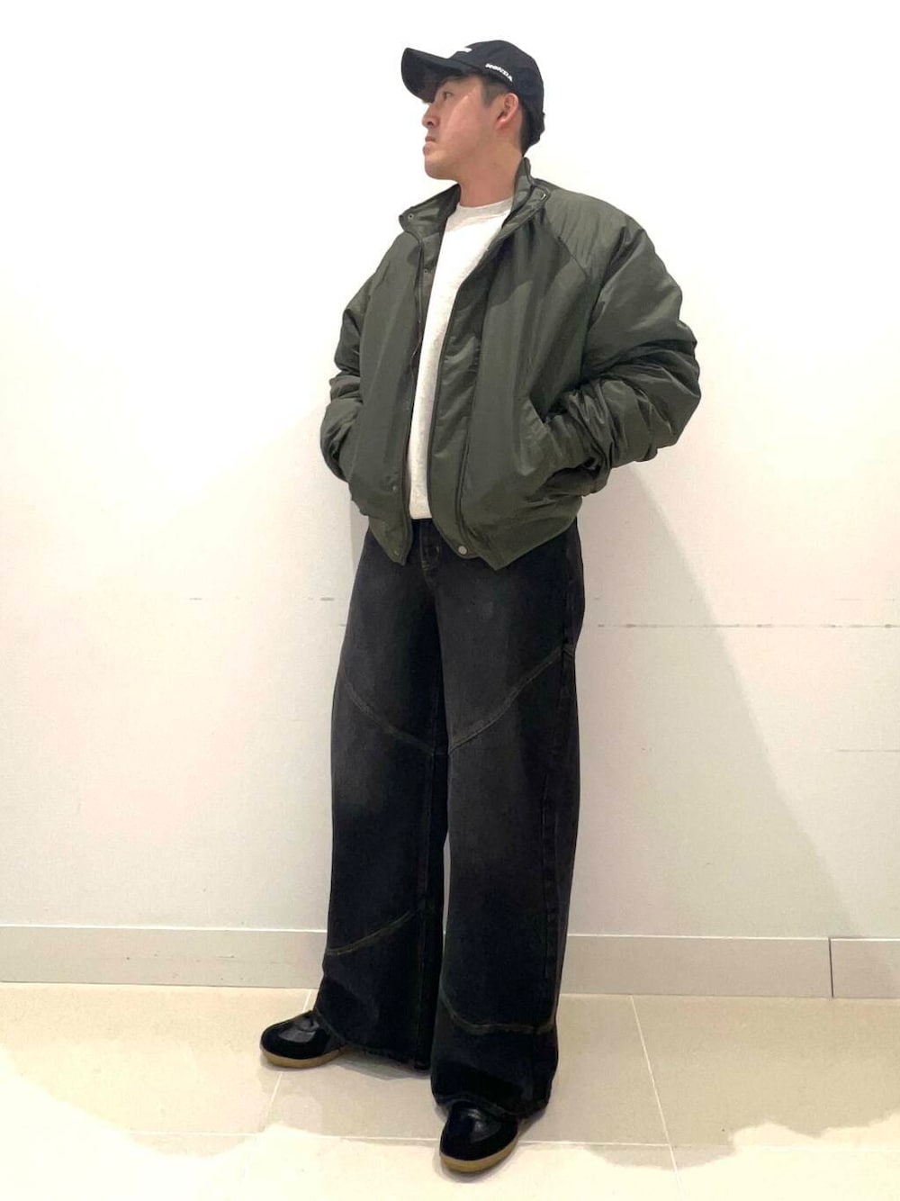 パンツはワイドシルエットが相性良く合わせていただけます。