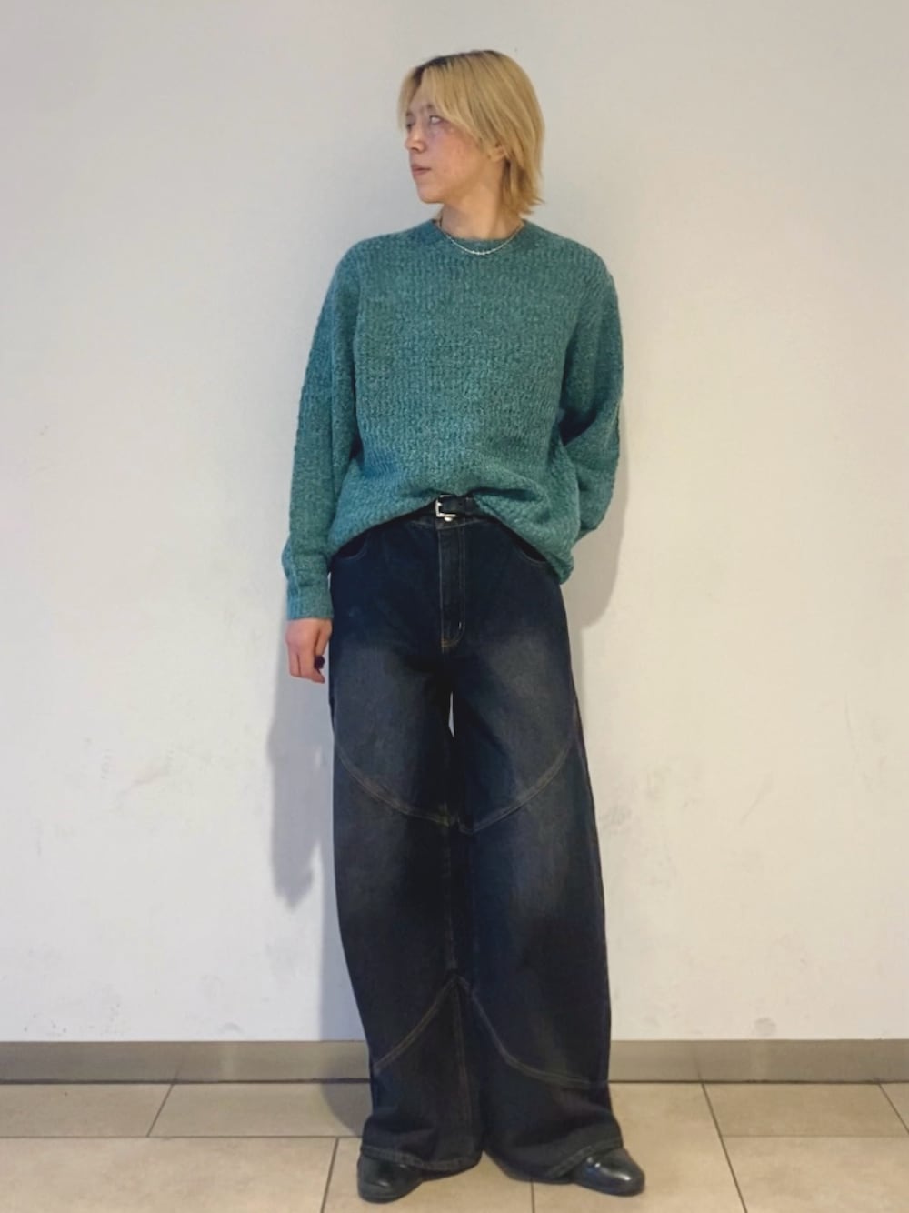 ベーシックなクルーネックニットなので合わせるボトムスによって様々な表情に様変わりします。デニムと合わせたアメカジスタイルや、スラックスと合わせた大人カジュアルスタイル、レザーとあわせたヴィンテージスタイルなど様々なスタイリングで活躍してくれます。ワイドパンツとの相性が抜群です。