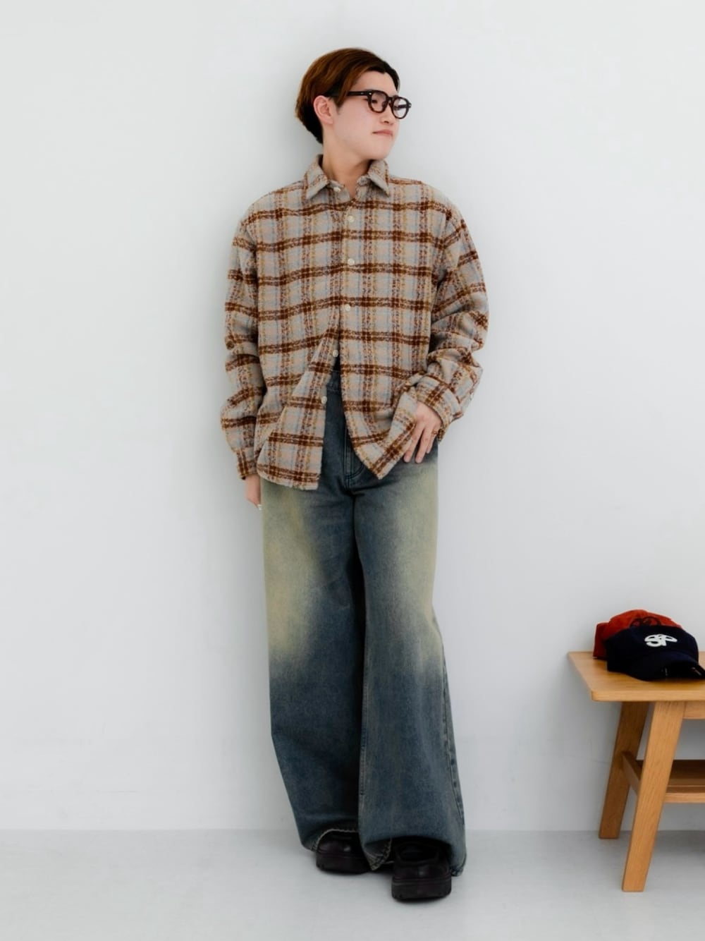 ふんわり暖かいこなれ感のあるブークレーチェックシャツ