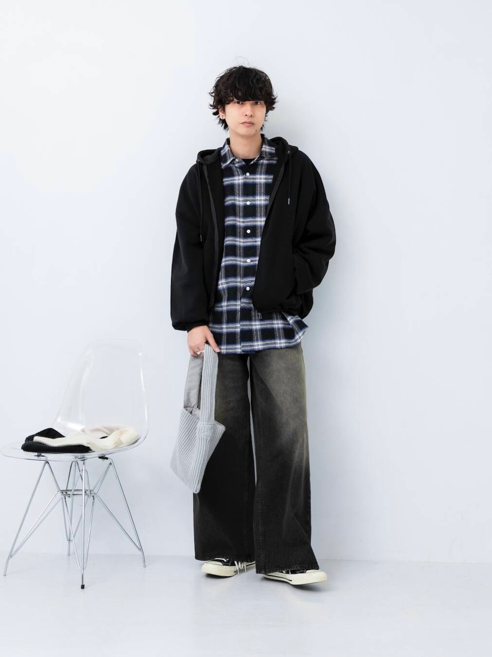 ボトムスにはビンテージ感のあるデニムやスラックスはもちろんですが、レザーなど個性派パンツとの相性も抜群です。ワイドやフレアといったトレンド感のあるシルエットのパンツがおすすめです。