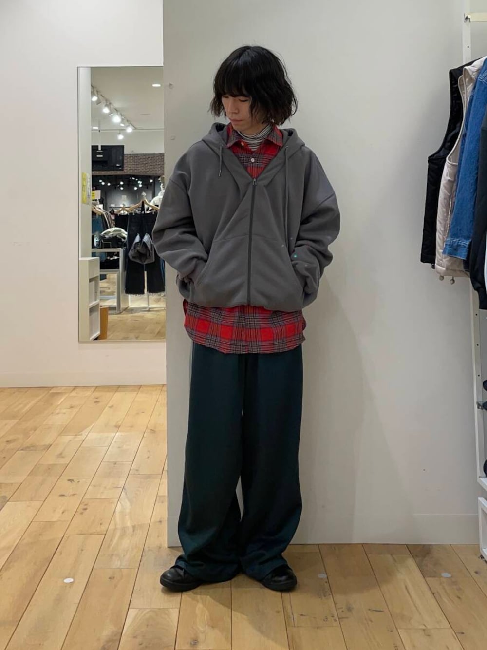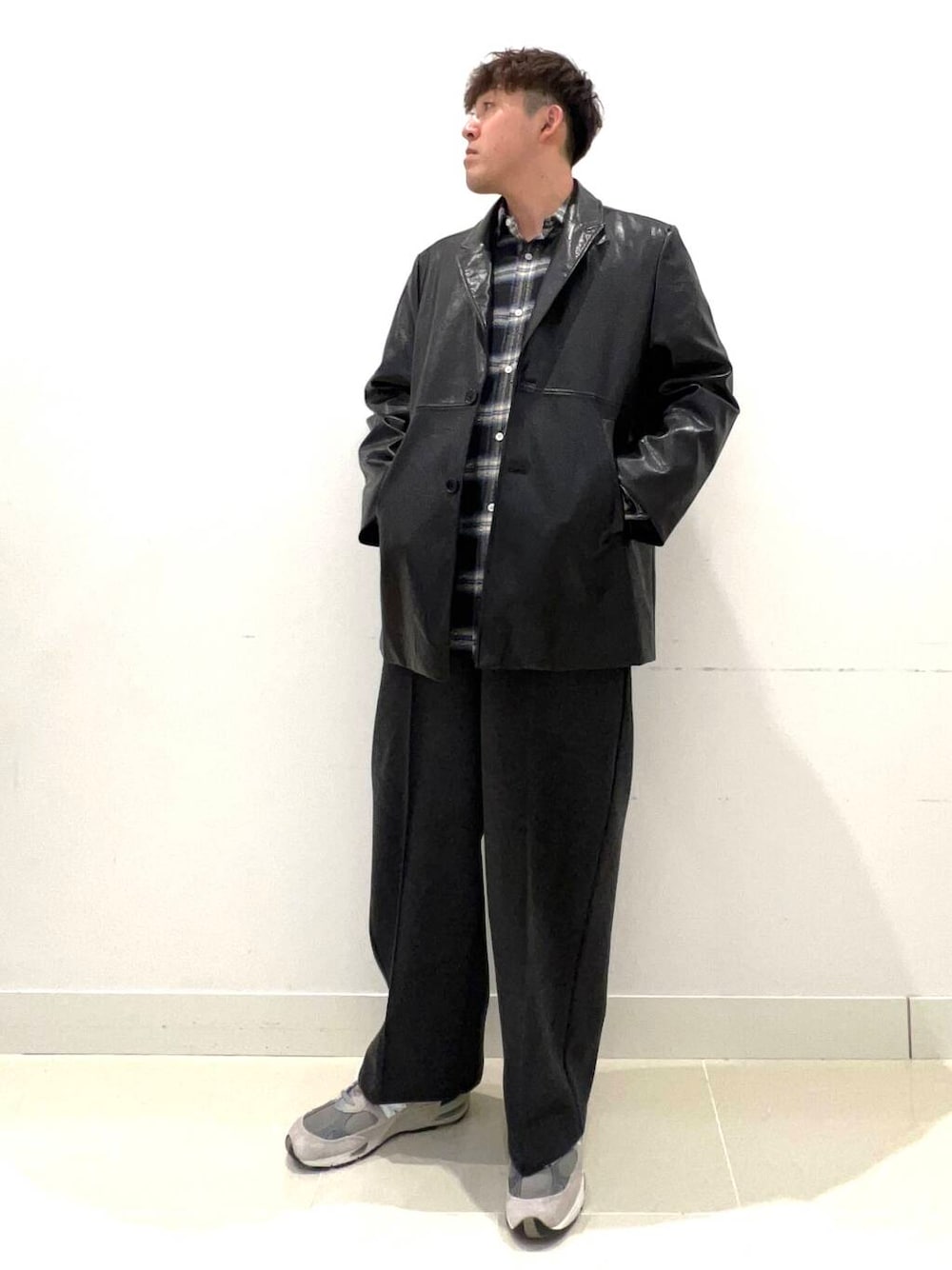 ボトムスにはビンテージ感のあるデニムやスラックスはもちろんですが、レザーなど個性派パンツとの相性も抜群です。ワイドやフレアといったトレンド感のあるシルエットのパンツがおすすめです。