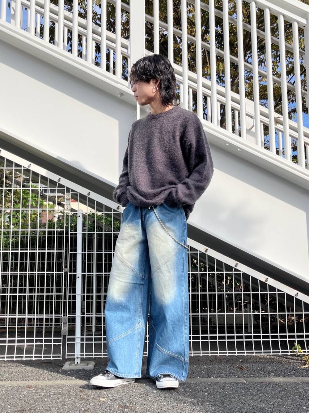 トレンドのY2Kスタイルやビンテージスタイルには欠かせないアイテムです。レザーアイテムやスウェット、ダック生地などカジュアルなアイテムとの相性が抜群です。足元にはレザーシューズやスニーカー、ブーツなど季節に合った様々なシューズとの相性が抜群