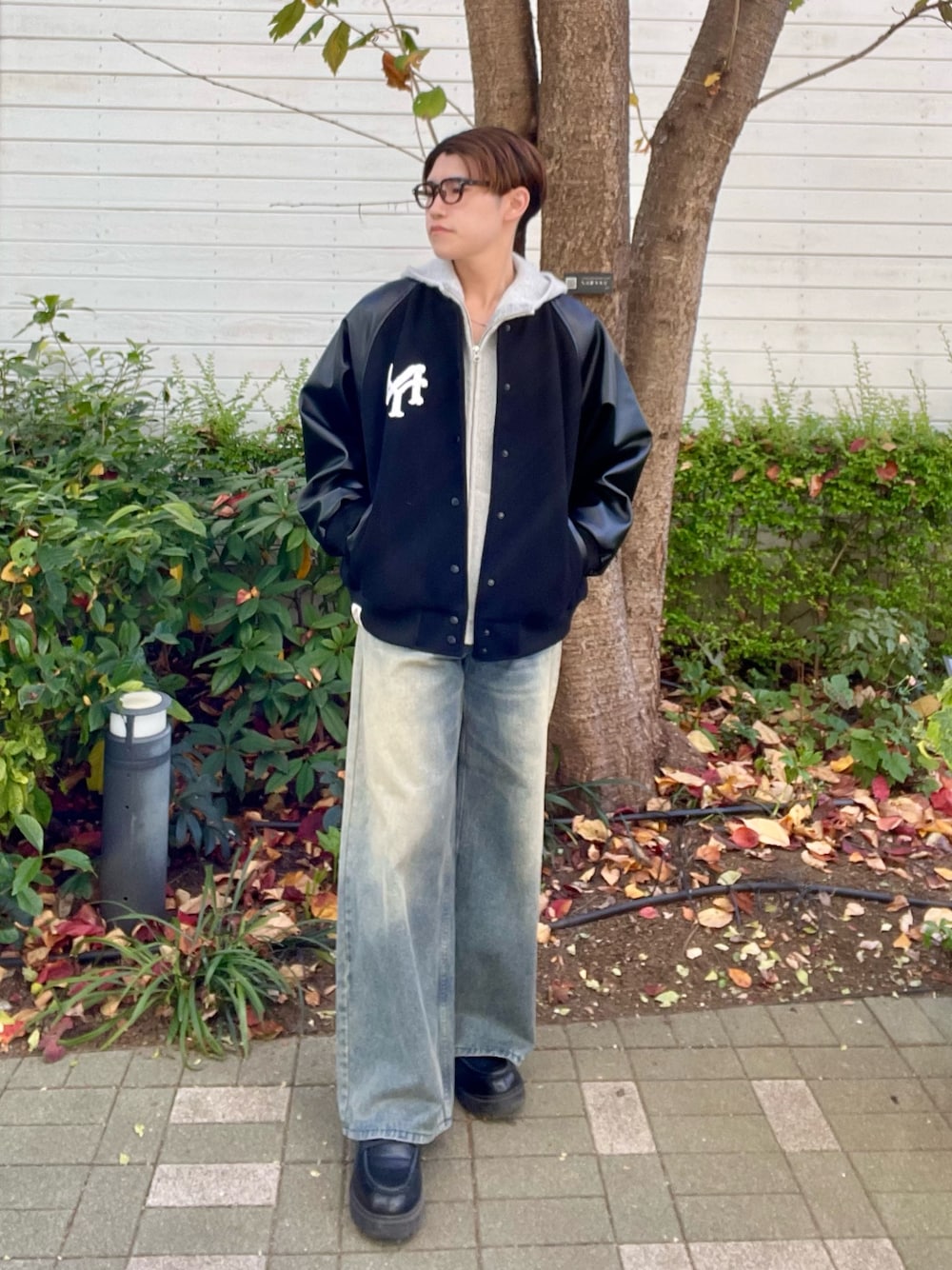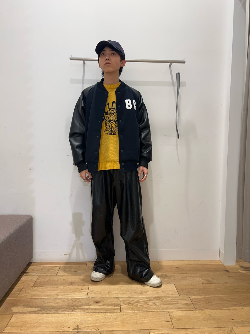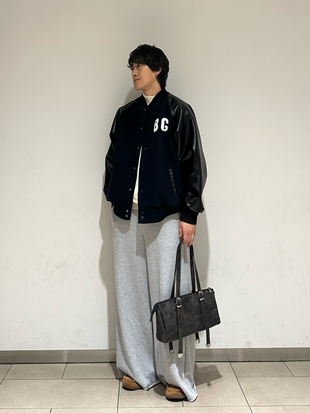 〇ウールライク×合成皮革のコンボ