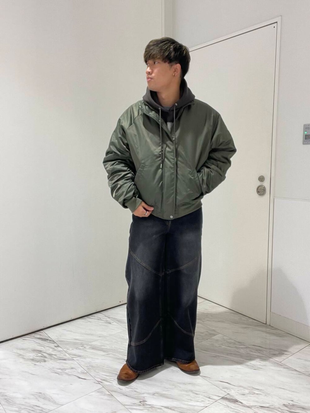 ワイドデニムやワイドスラックスをボトムスに、トップスは短丈のアイテムを合わせていただくとトレンド感あるスタイリングが完成します。インナーにはニットやスウェット、フーディなどを合わせて、シューズもスニーカーだけでなくレザーシューズやブーツなど幅広いテイストで合わせていただけます。
