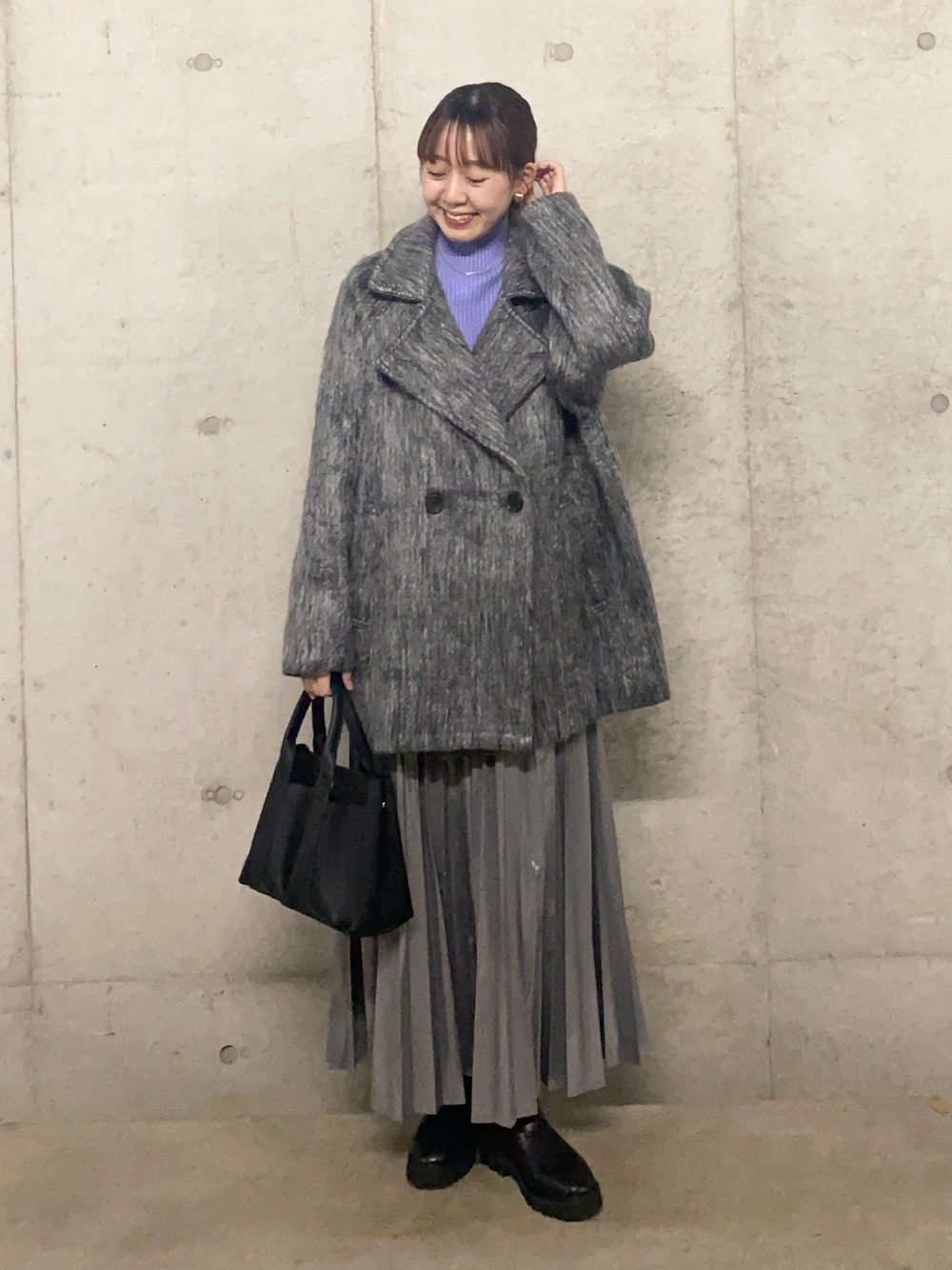 コンパクトサイズは身長150cm前後の方でも首元のフィット感が綺麗に着用できるサイズ感になっています。毛玉になりにくい機能がついてさらに実用的に!