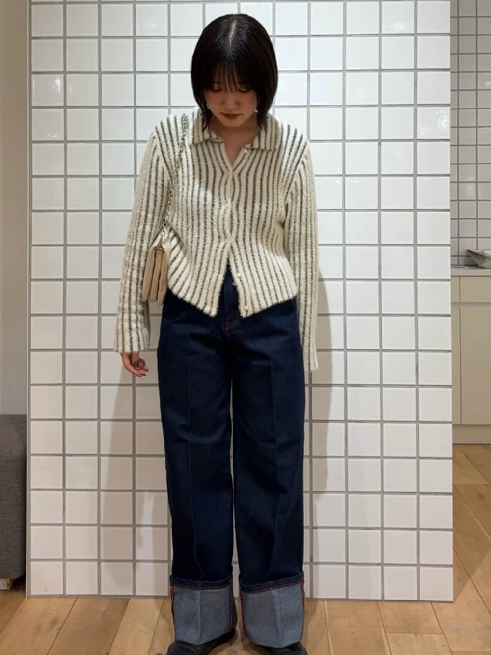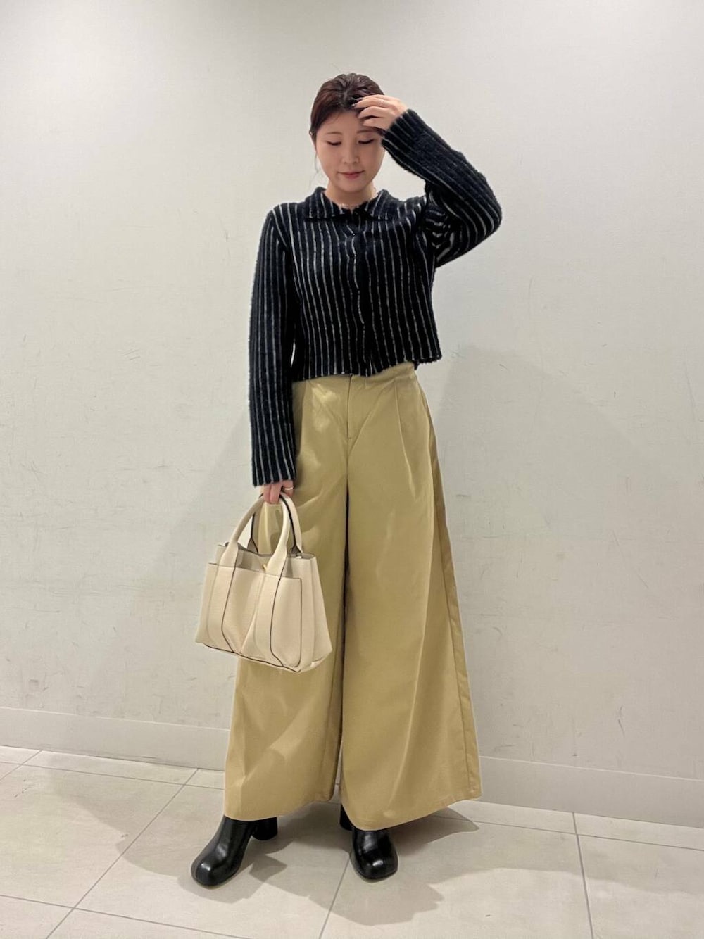 〇リブデザイン×クロップド丈でスタイルアップ