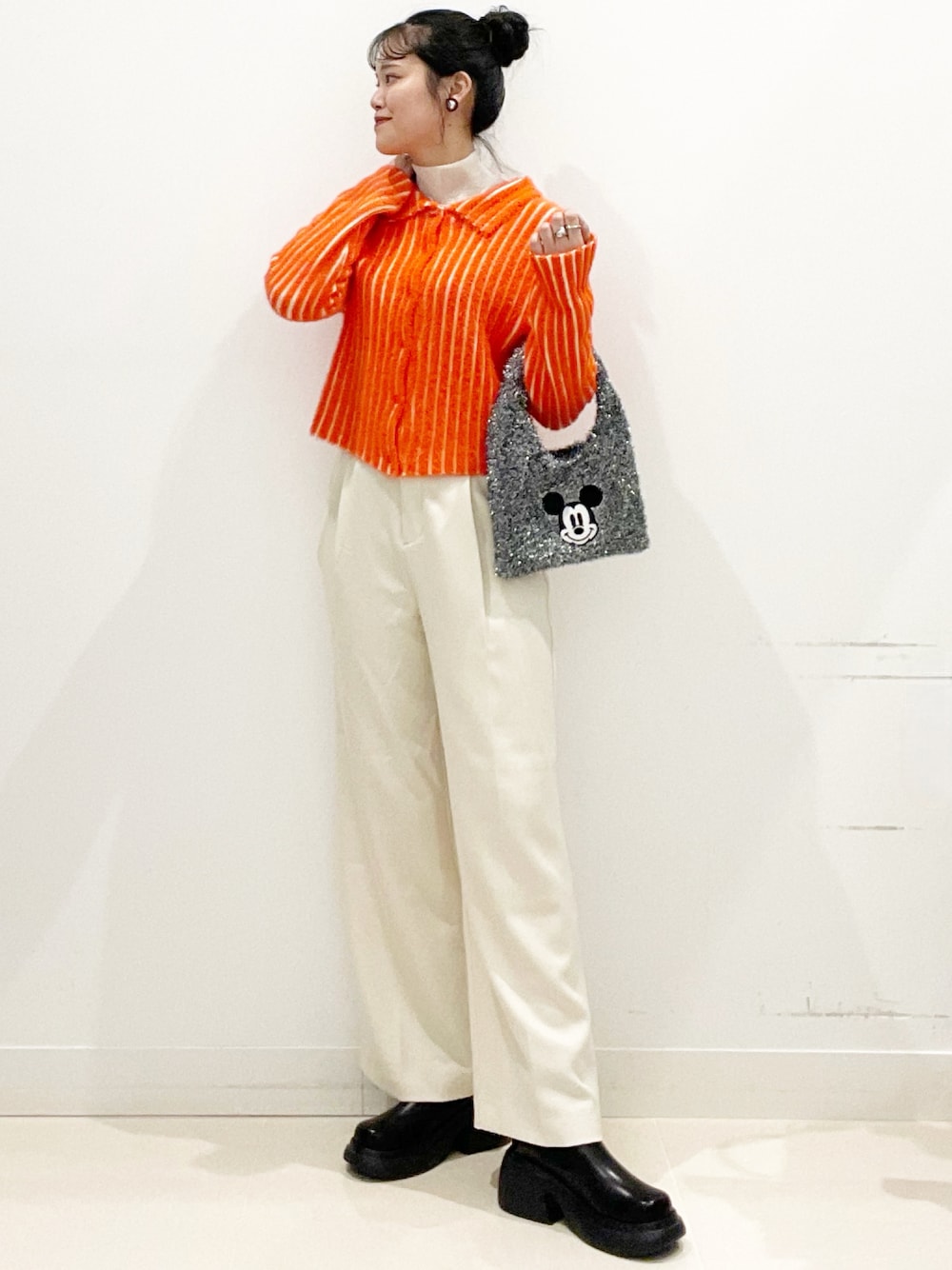 1枚着はもちろん、ハイネック等のレイヤードでも可愛く着こなす事が出来ます〇BLACK・IVORYと鮮やかなORANGEの3色展開です