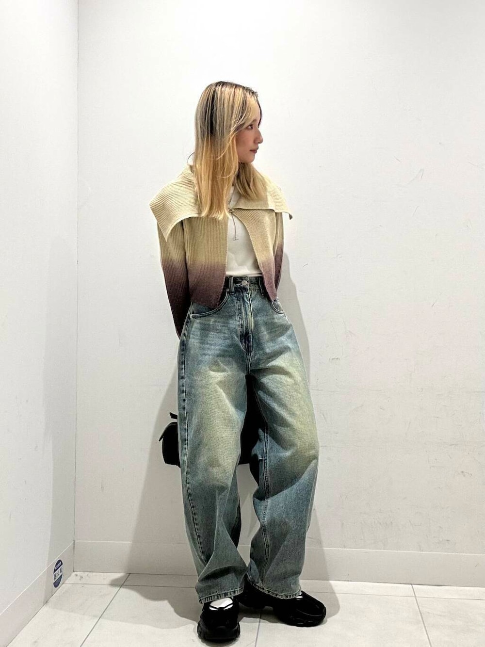 ハイウエストボトムと相性ばっちりなクロップド丈。