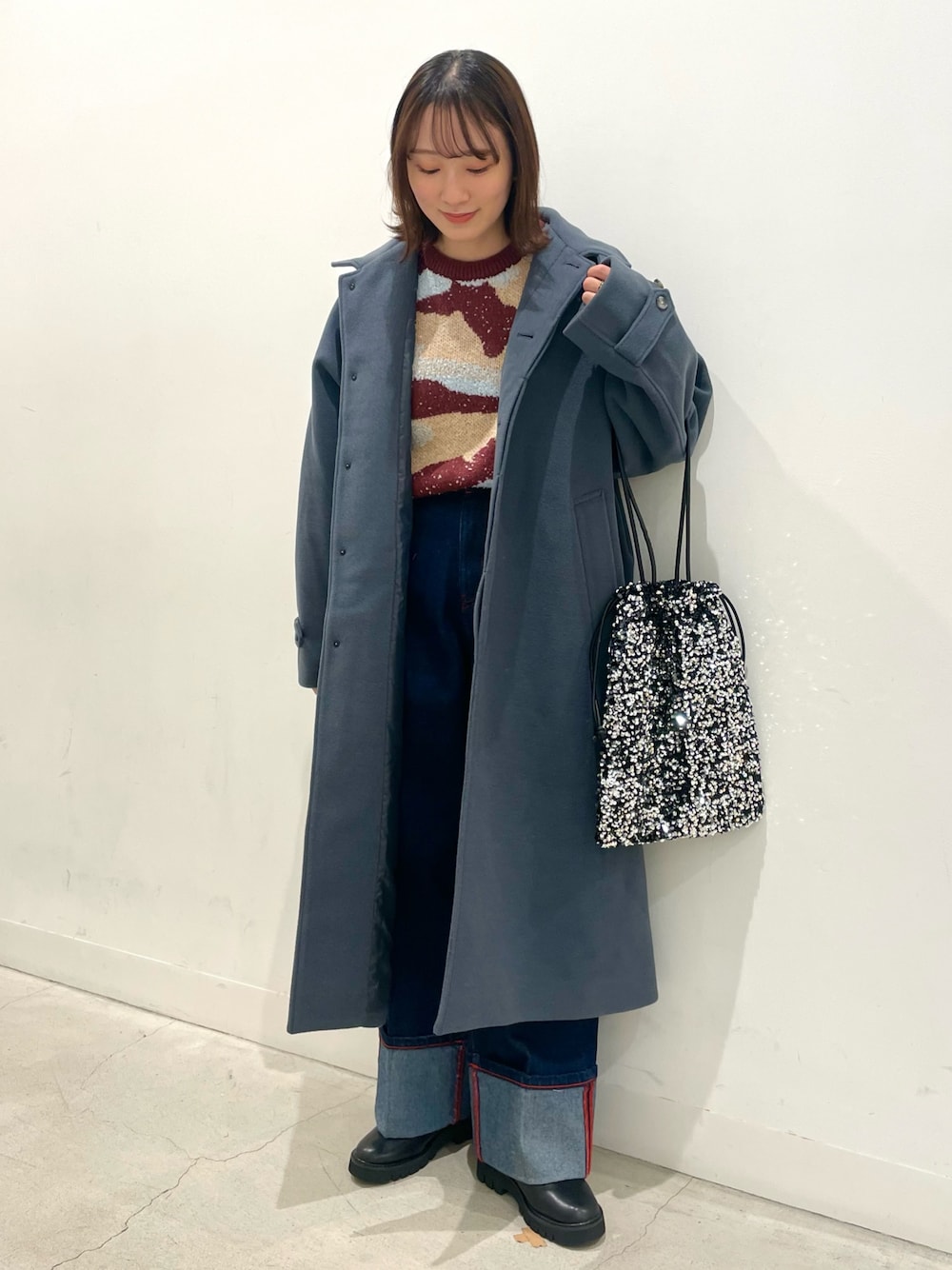 ニット自体が目を惹く主役級なのでボトムはシンプルにデニムや無地のスカートを合わせ、是非ニットを目立たせて着用していただきたいです。