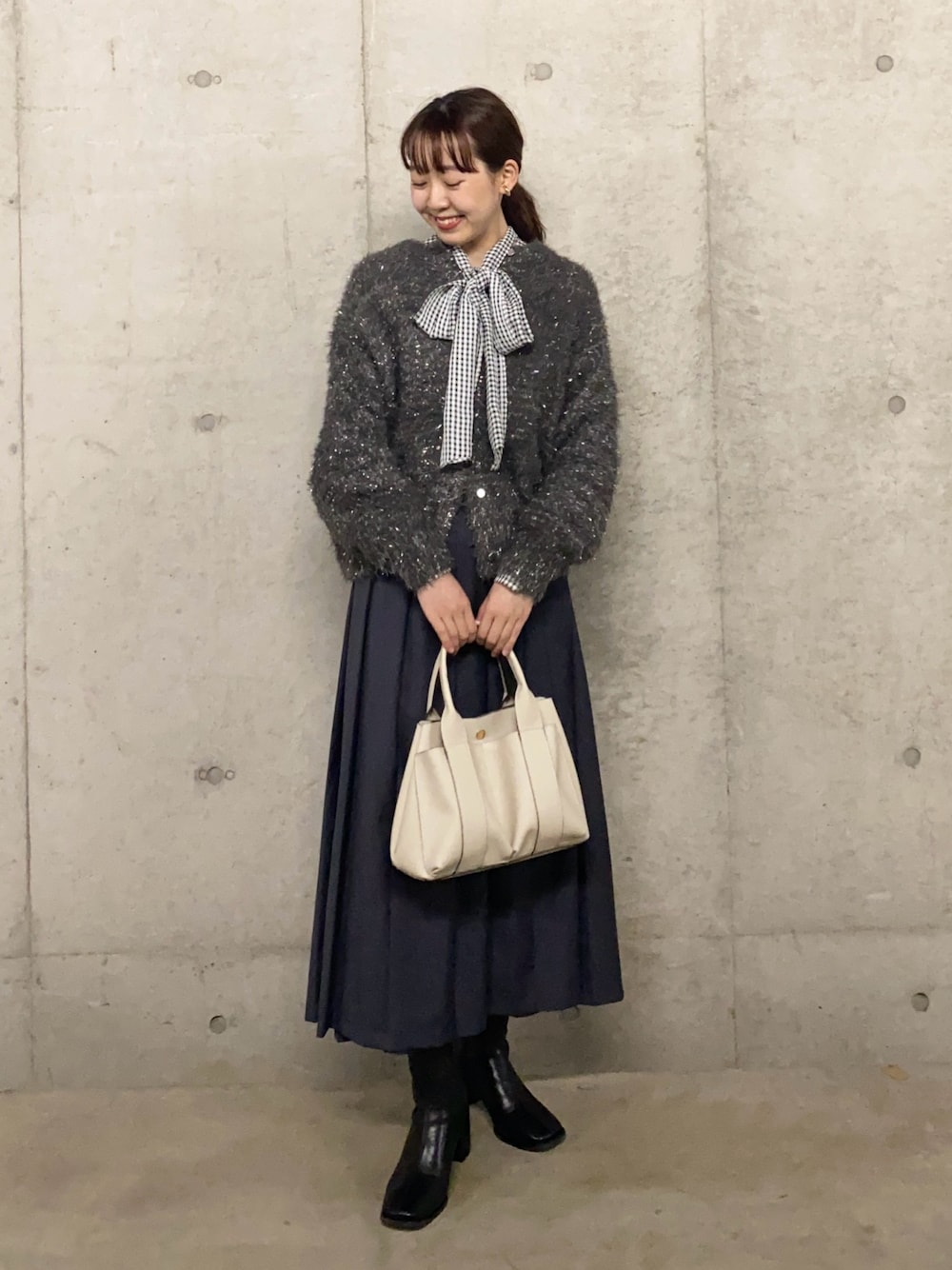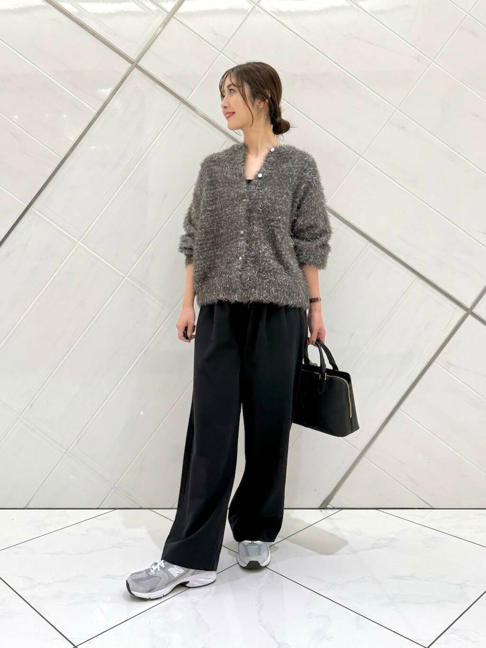 シーズンムードを高めるラメ感が洗練された印象をプラス。ゆるやかなシルエットでキャミワンピースとの合わせや、デニムでカジュアルにまとめたコーディネートもオススメです◎