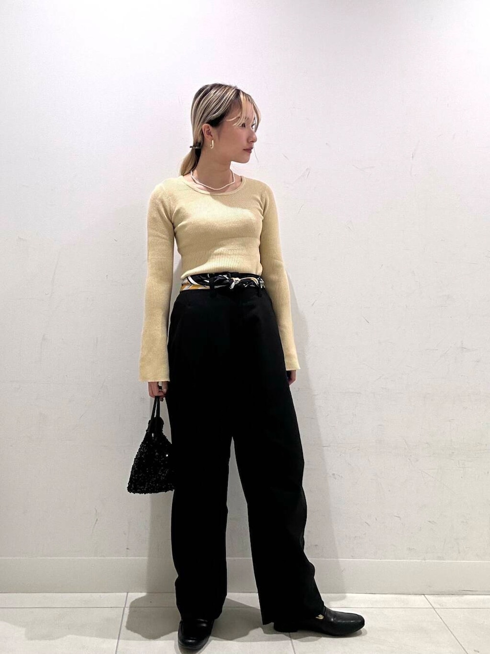 体に綺麗にフィットしてくれるサイズ感で体を綺麗に見せてくれるニットです。今期はボリューム感のあるスカートに合わせるスタイリングがおすすめ。