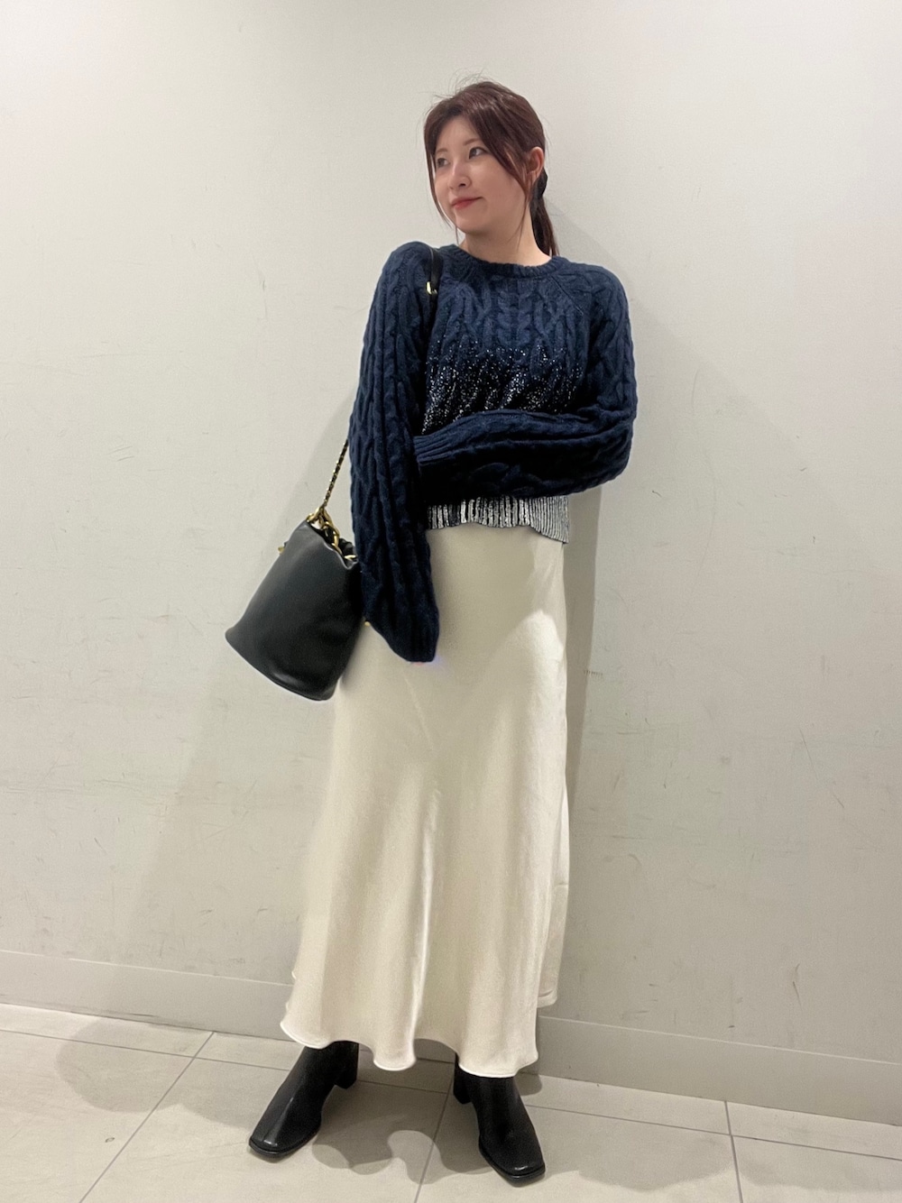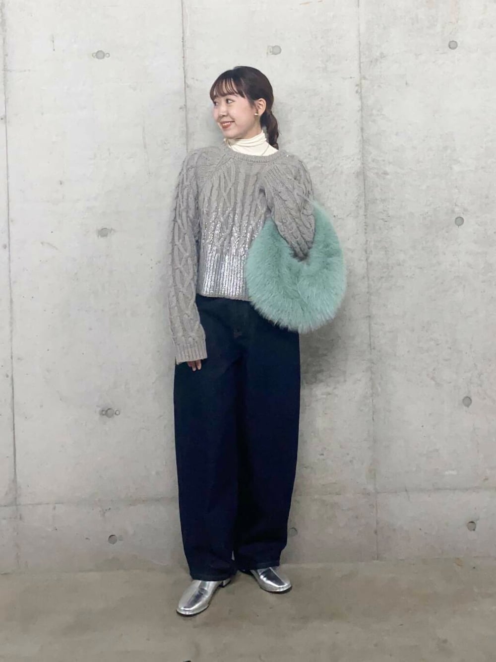 シンプルで合わせやすいシルエットに、ケーブル編みと箔プリントを落とし込んだ着映えニット◎贅沢ながらもささやかな光沢感は一枚でも様になり、アウターの下に着用した際も華やかなコーディネートを演出してくれます◎