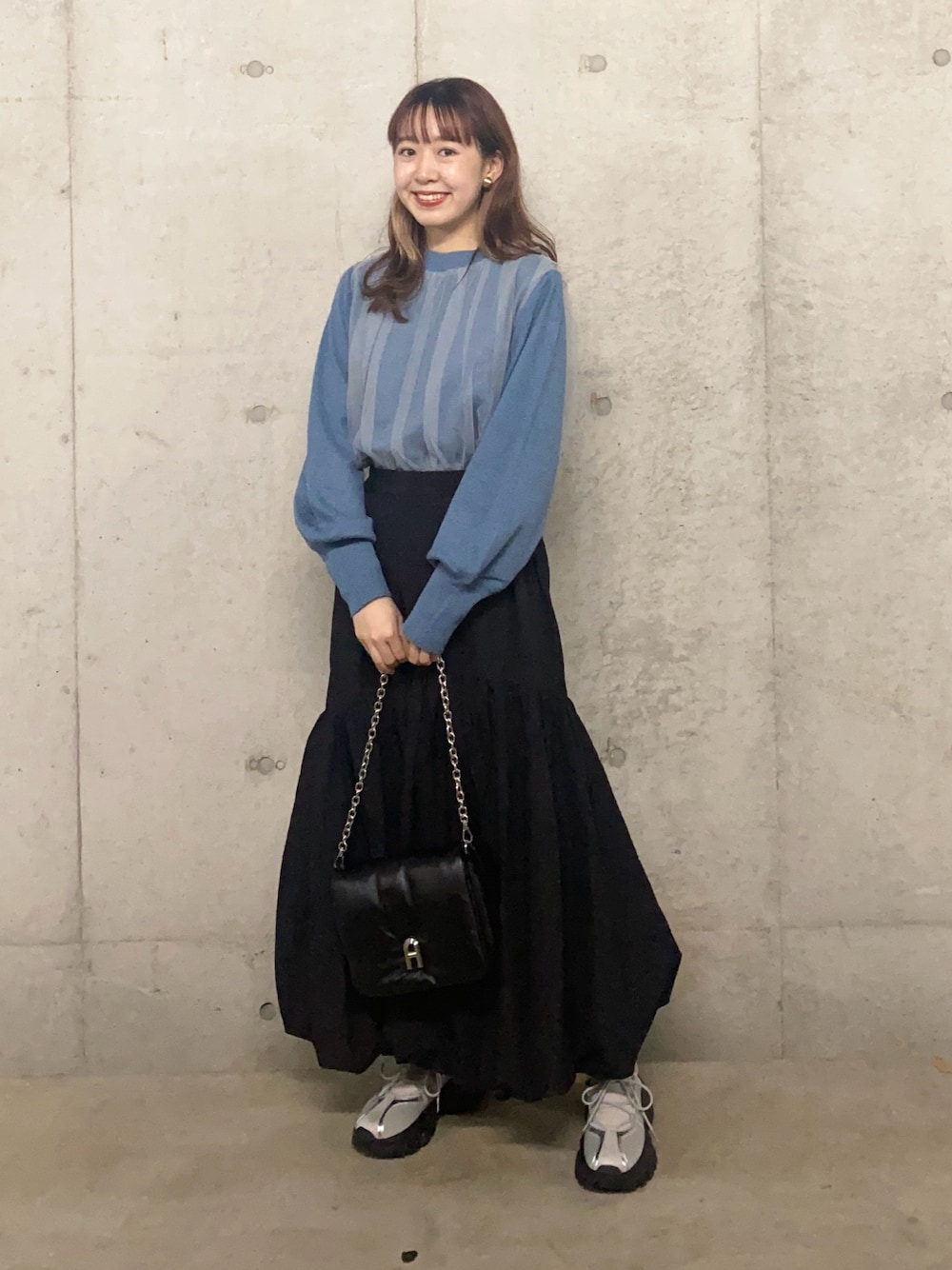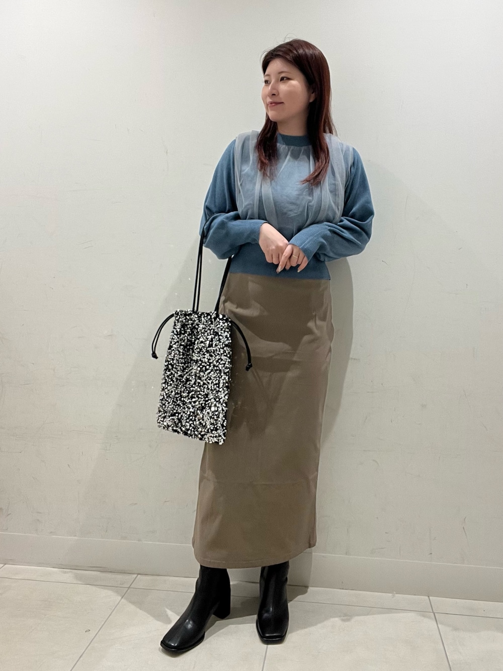 シンプルデザインのニットにチュールをレイヤードしたトップスは1枚で華やかさをプラスしてくれます。スカートでキレイめコーデはもちろん、スラックスでハンサムに仕上げても〇