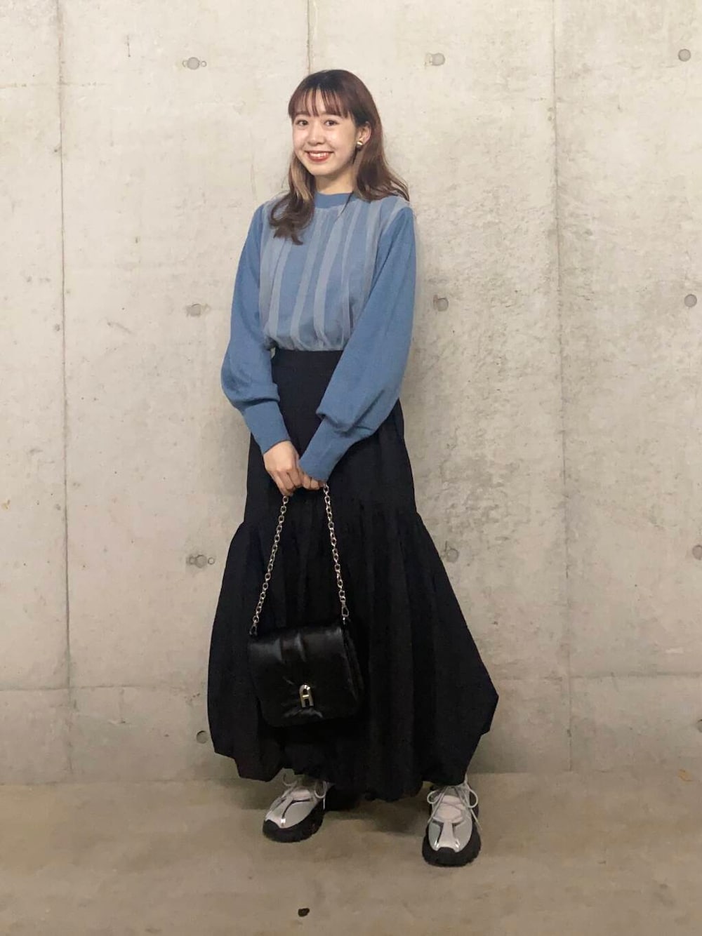 シンプルデザインのニットにチュールをレイヤードしたトップスは1枚で華やかさをプラスしてくれます。スカートでキレイめコーデはもちろん、スラックスでハンサムに仕上げても〇