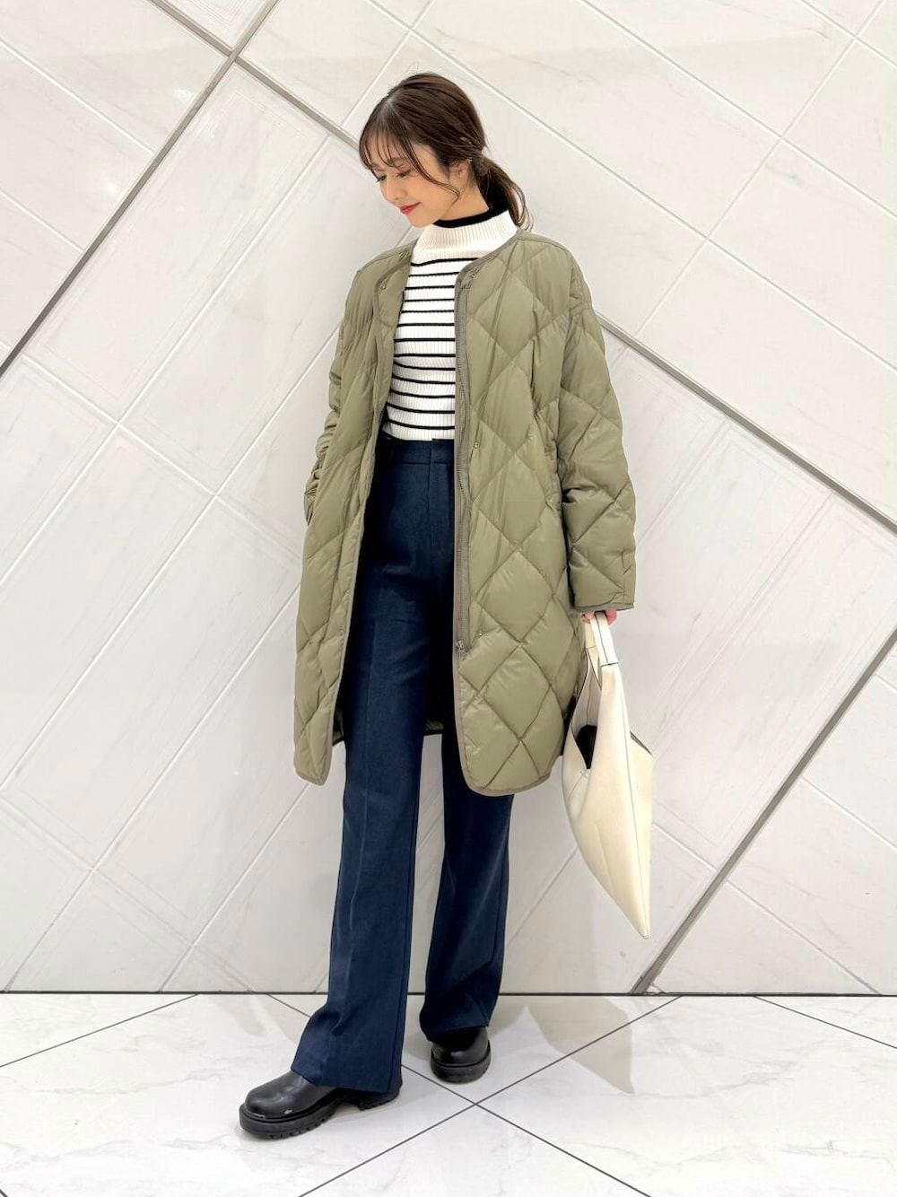 センタープレスの入ったフレアシルエットでウォーム感のある素材も野暮ったくならず、すっきりとした着こなしが楽しめます。
