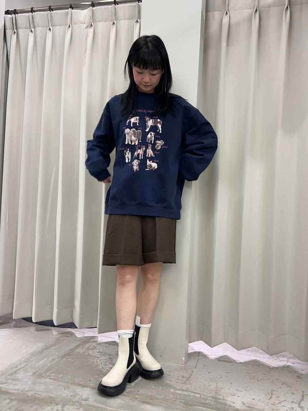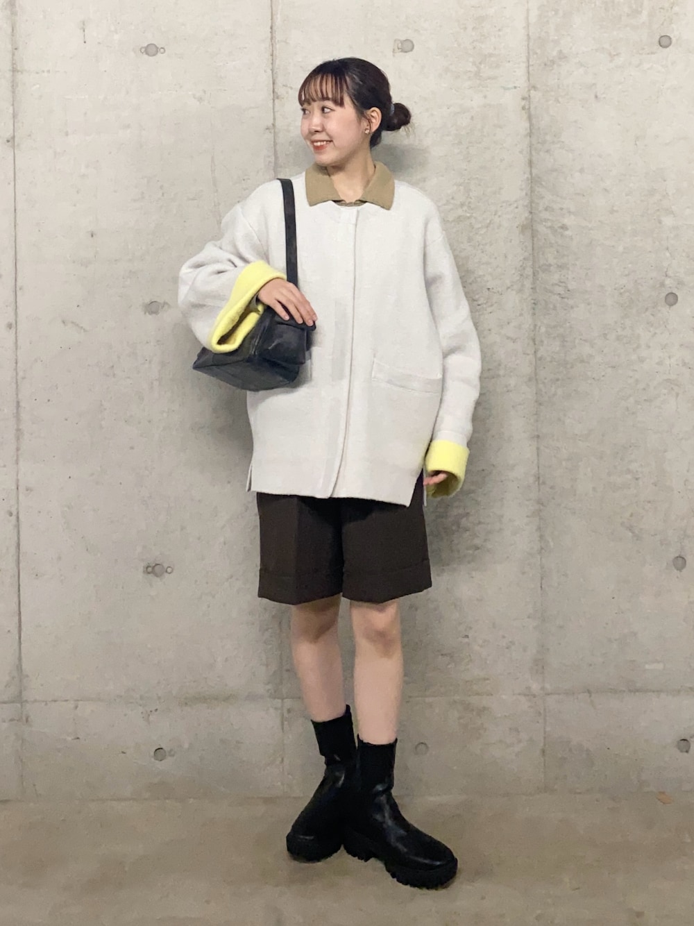 ルーズなニットに合わせて足元に抜け感を出すスタイルがおすすめ。お気に入りのブーツと合わせてトレンドのミニボトムに挑戦!