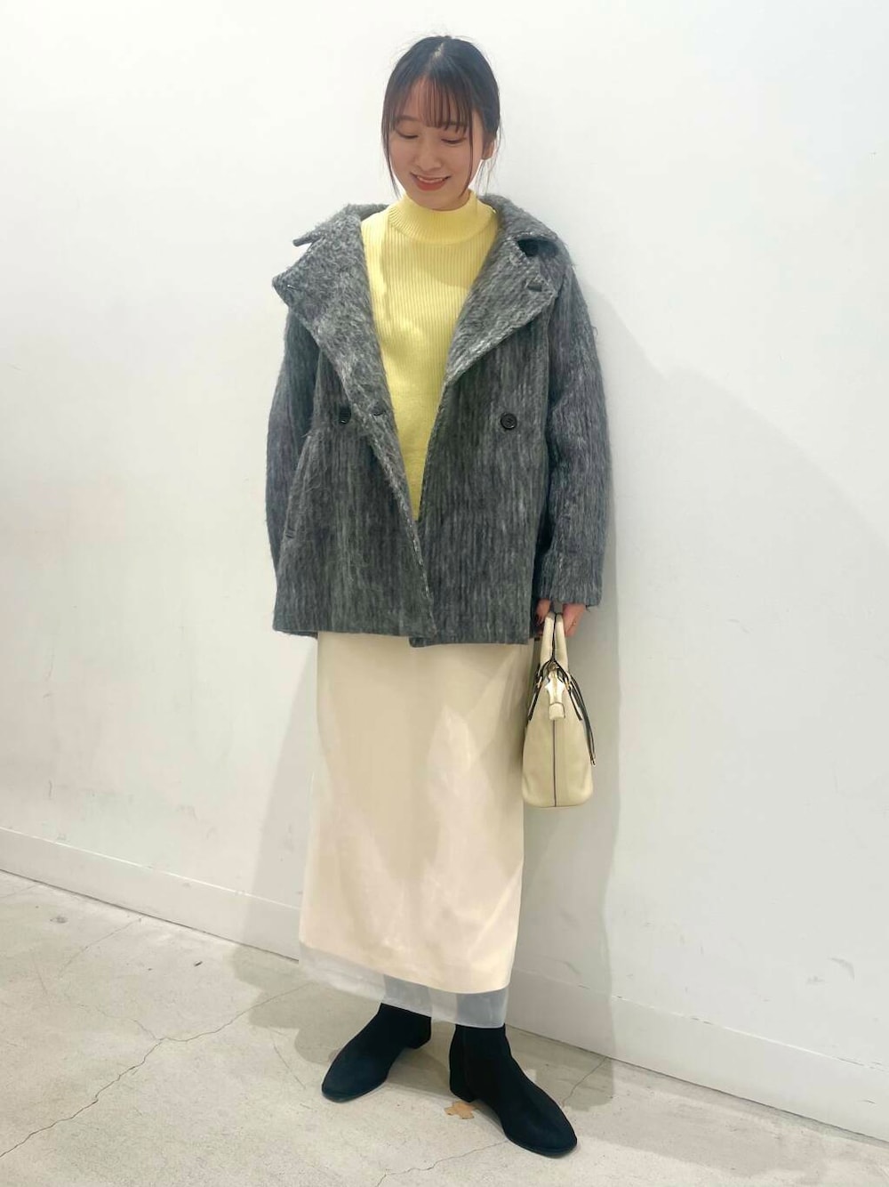 冬の時期のふわふわとしたニットと高相性。タートルのリブニットなどと合わせると大人な印象のスタイリングに!