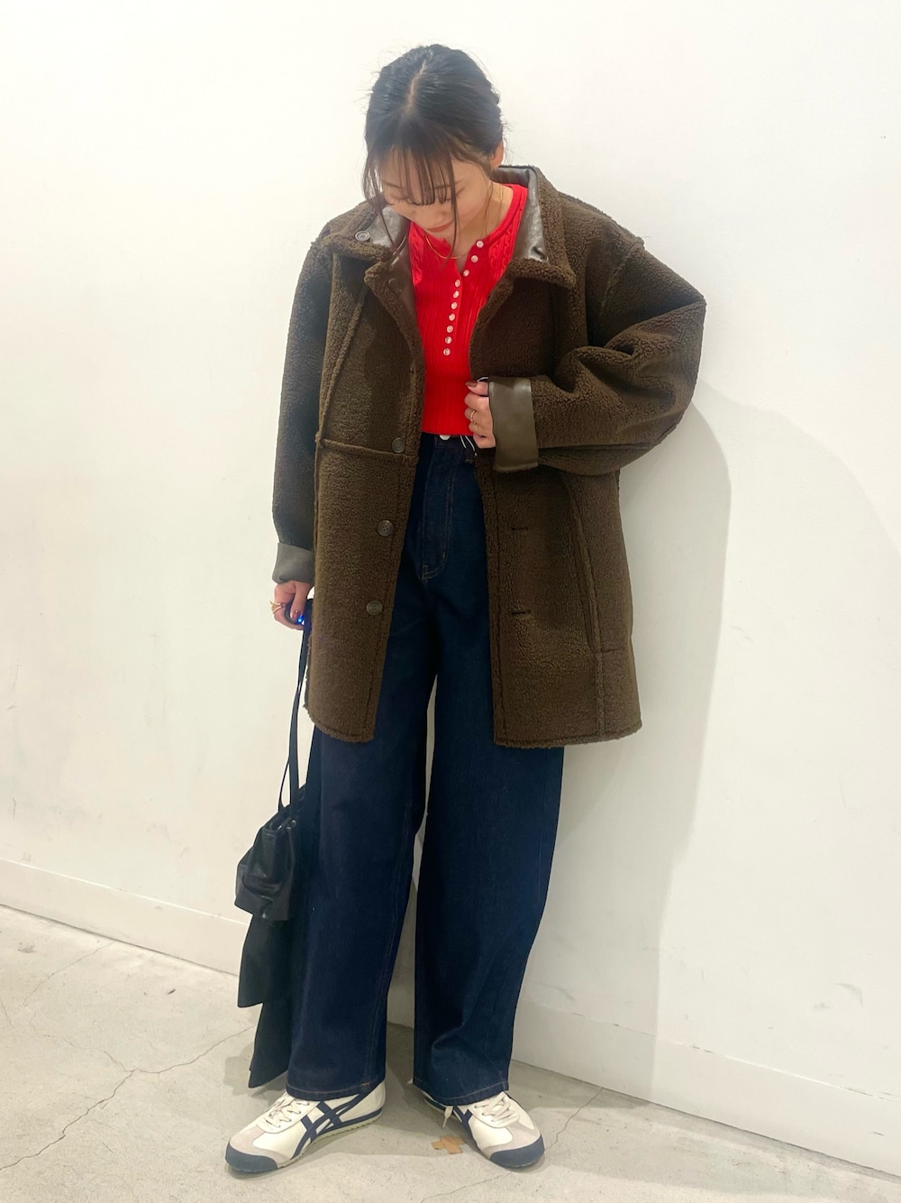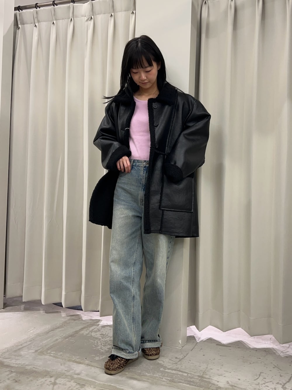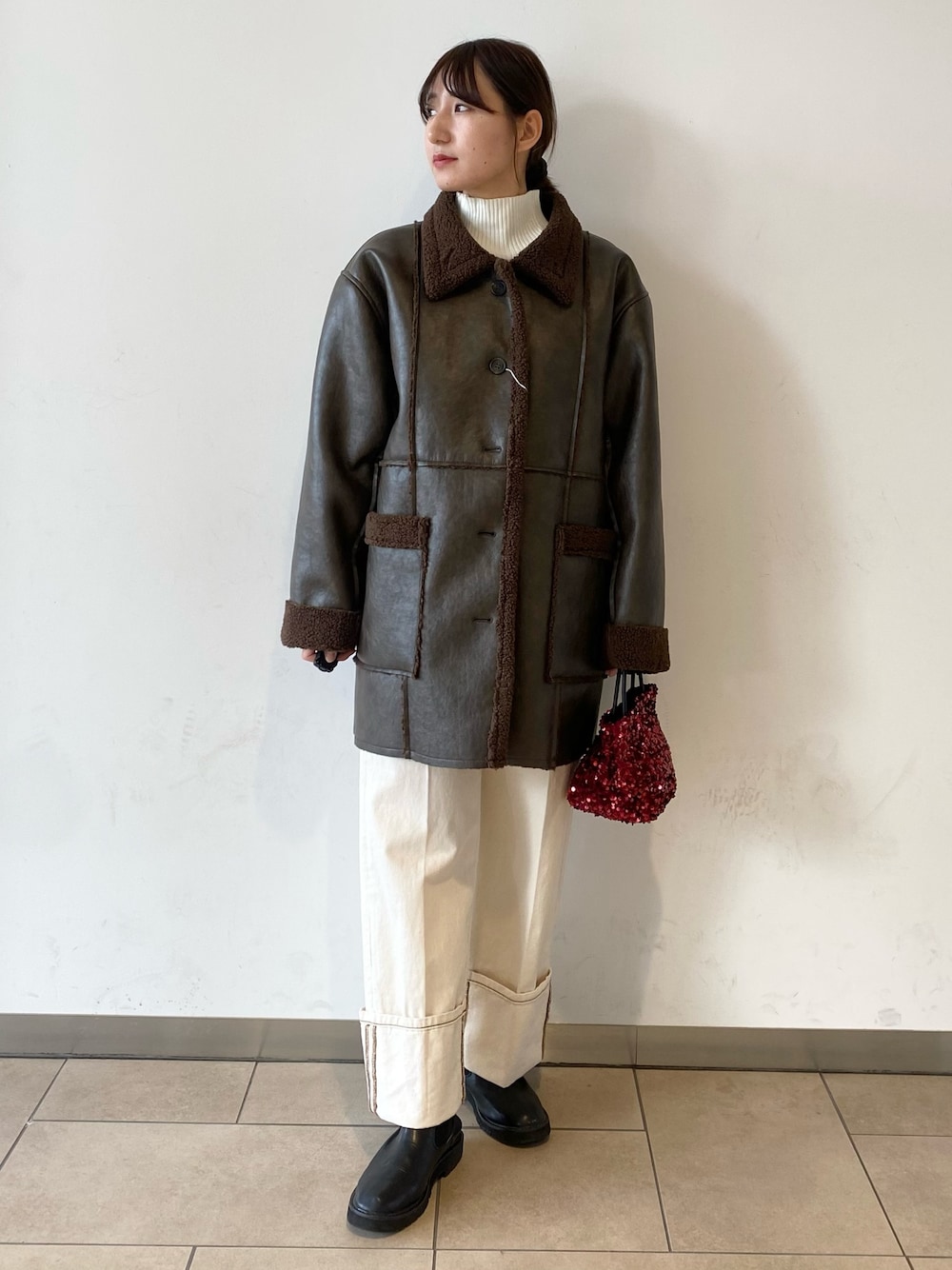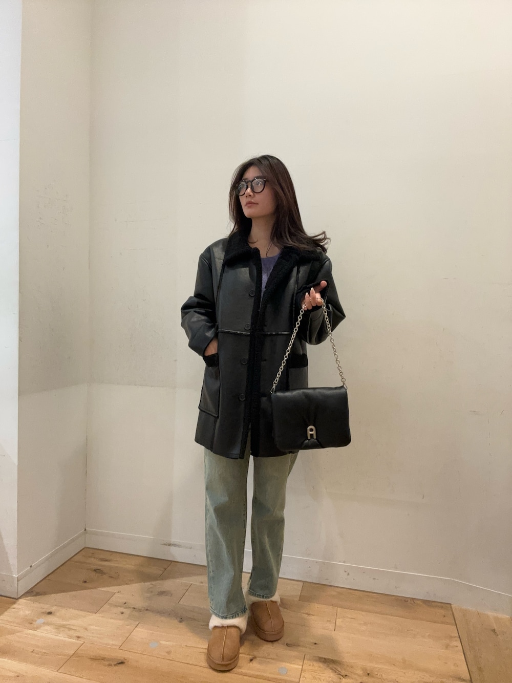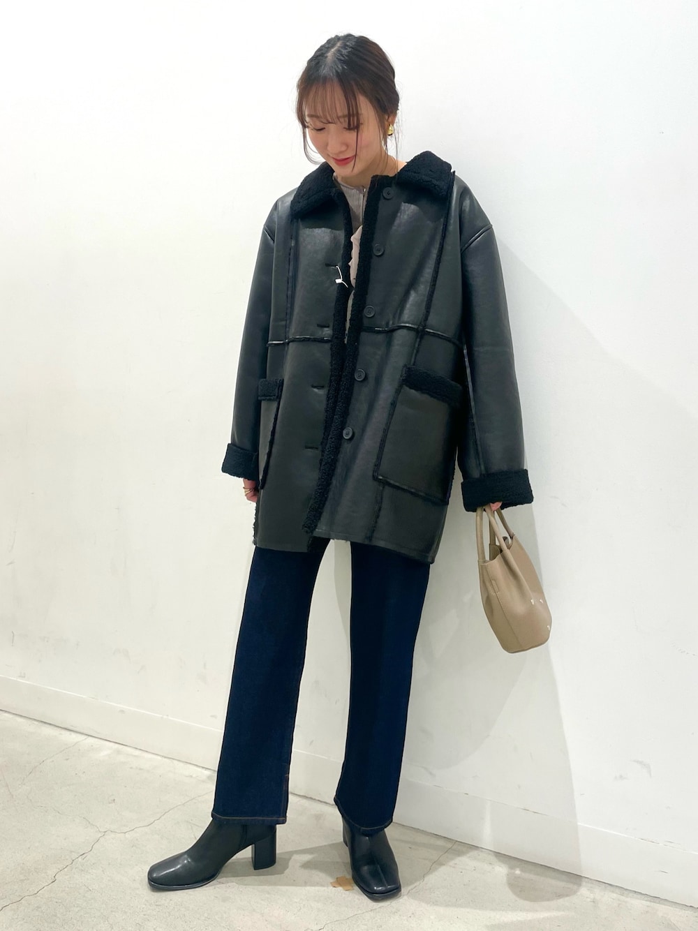 ヴィンテージ感のある素材感が今年らしいレザージャケット。ミドル丈でヒップまで隠れる為、すっきりとしたスラックスやストンとしたIラインのスカートなどとのスタイリングがおすすめです。