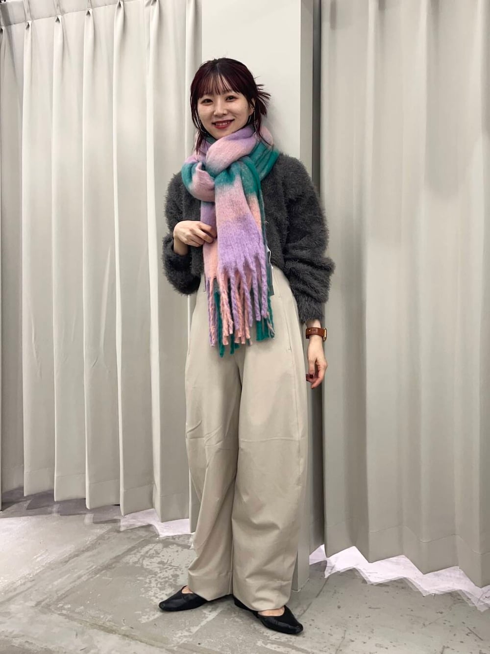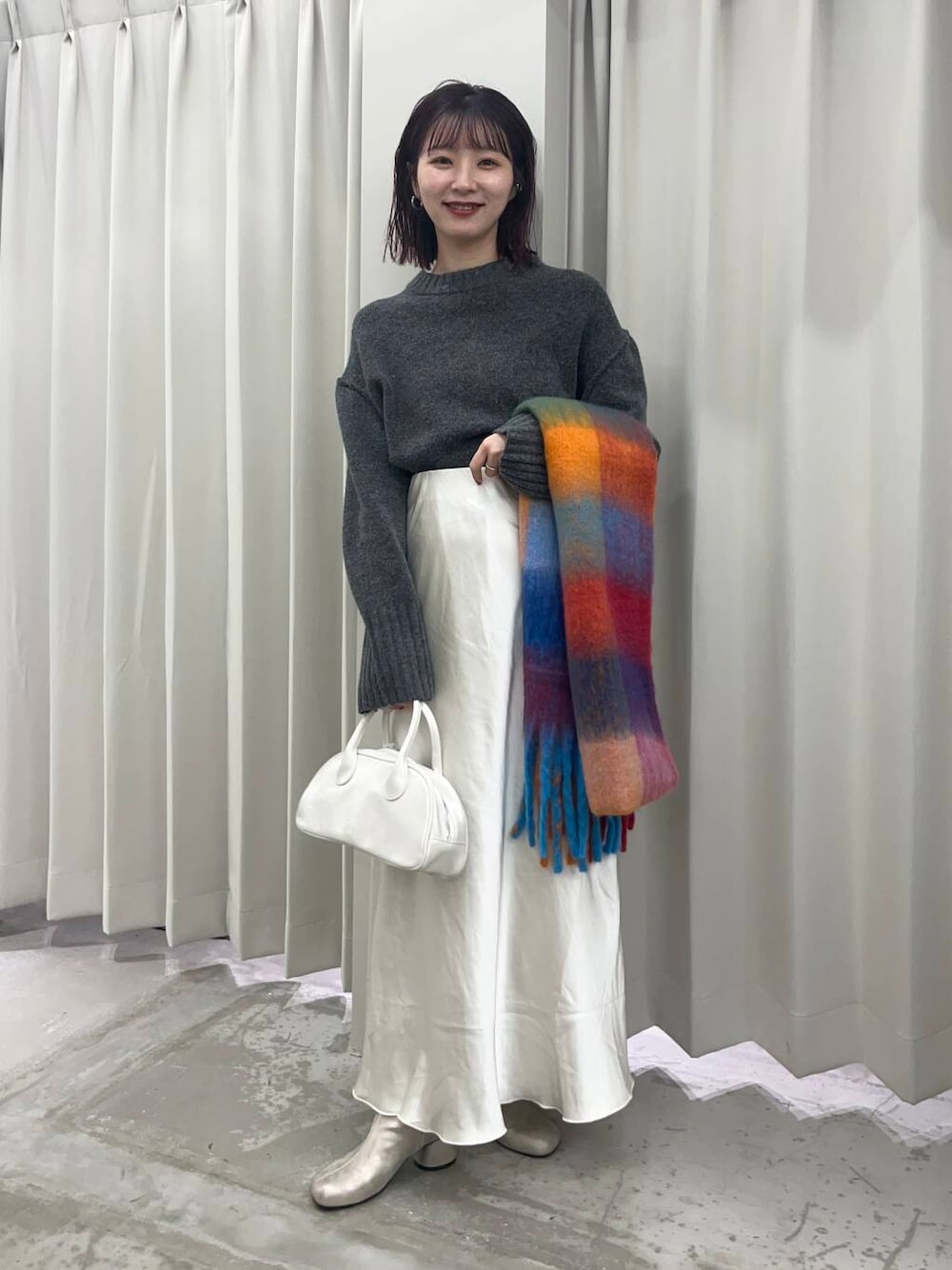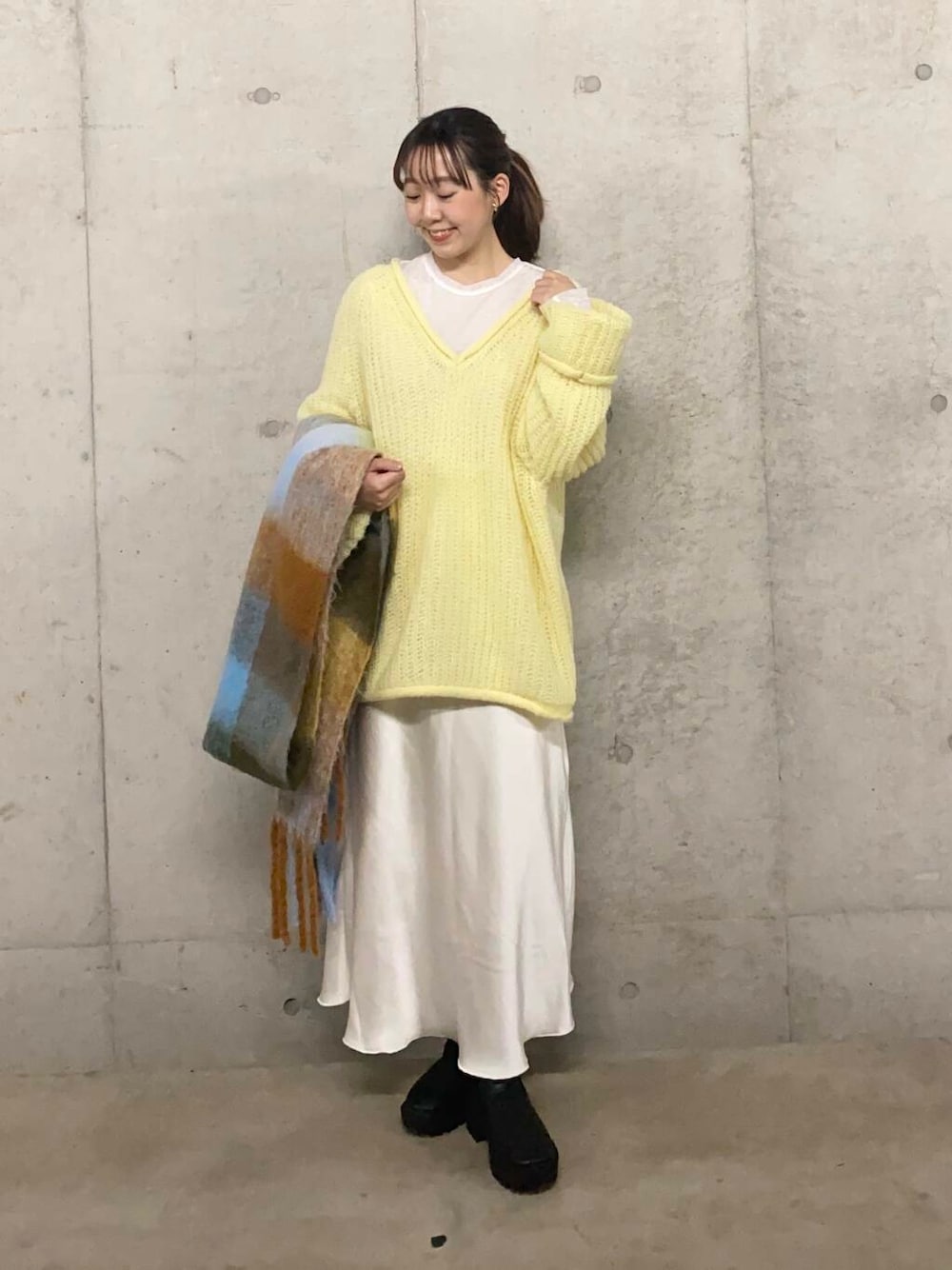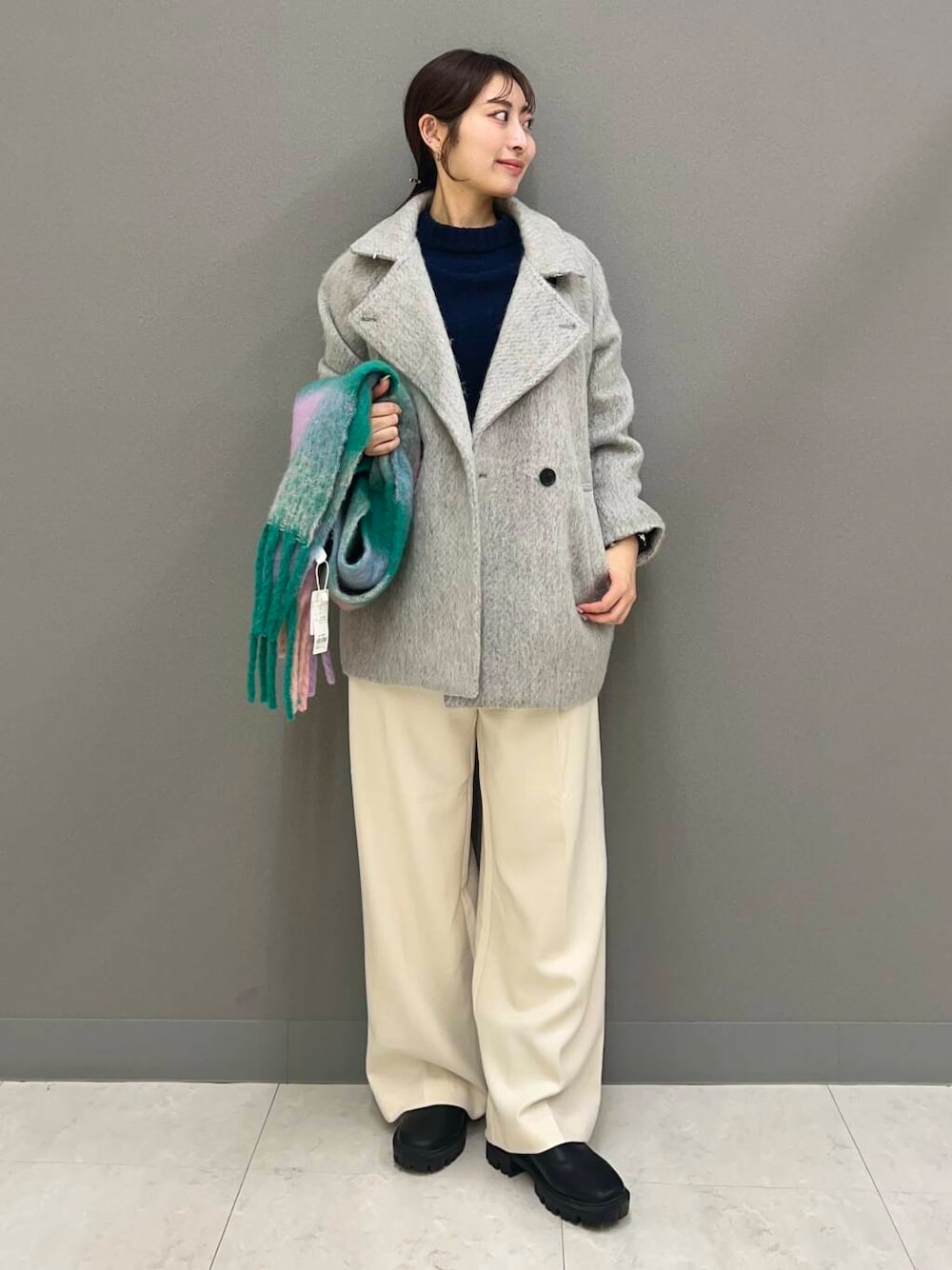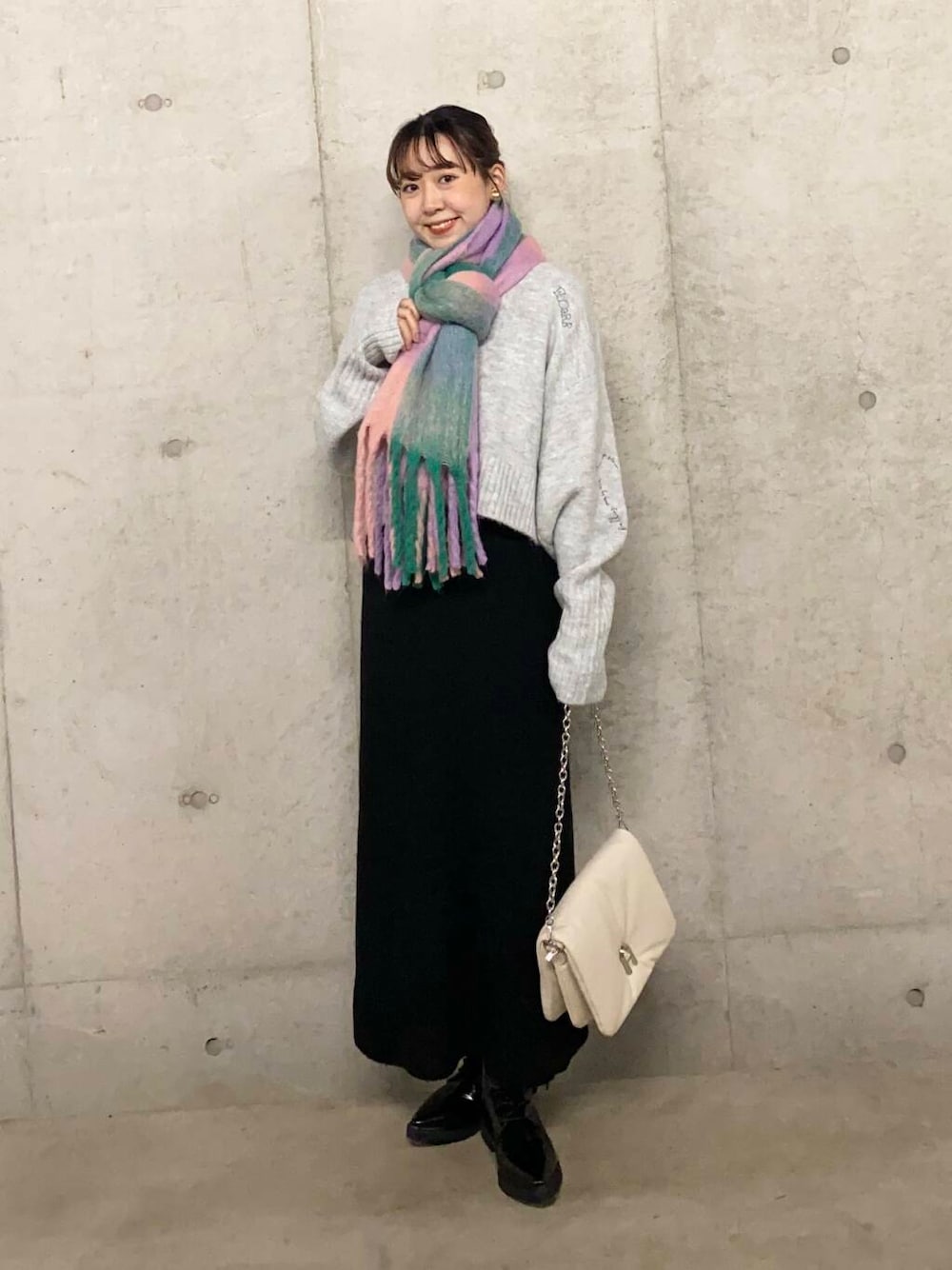 持っておくだけでコーディネート映えするカラー展開×チェック柄はシンプルな洋服やコートなどのアウターとの相性抜群!ボリューム感が今年らしくパンツスタイル合わせはもちろんミニスカート×ロングブーツでかわいらしさを演出するのもおすすめです♪