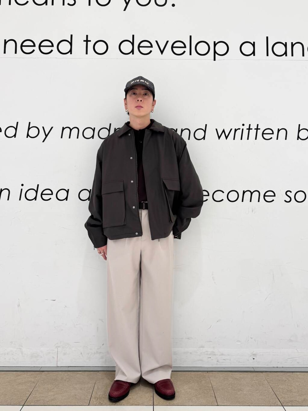 きれいめなシャツやニットなどとの相性はもちろんですが、カジュアルなスウェットやブルゾンなどと合わせれば、クリーンなスタイリングに様変わりします。足元は革靴からスニーカーまで幅広く合わせていただけます。
