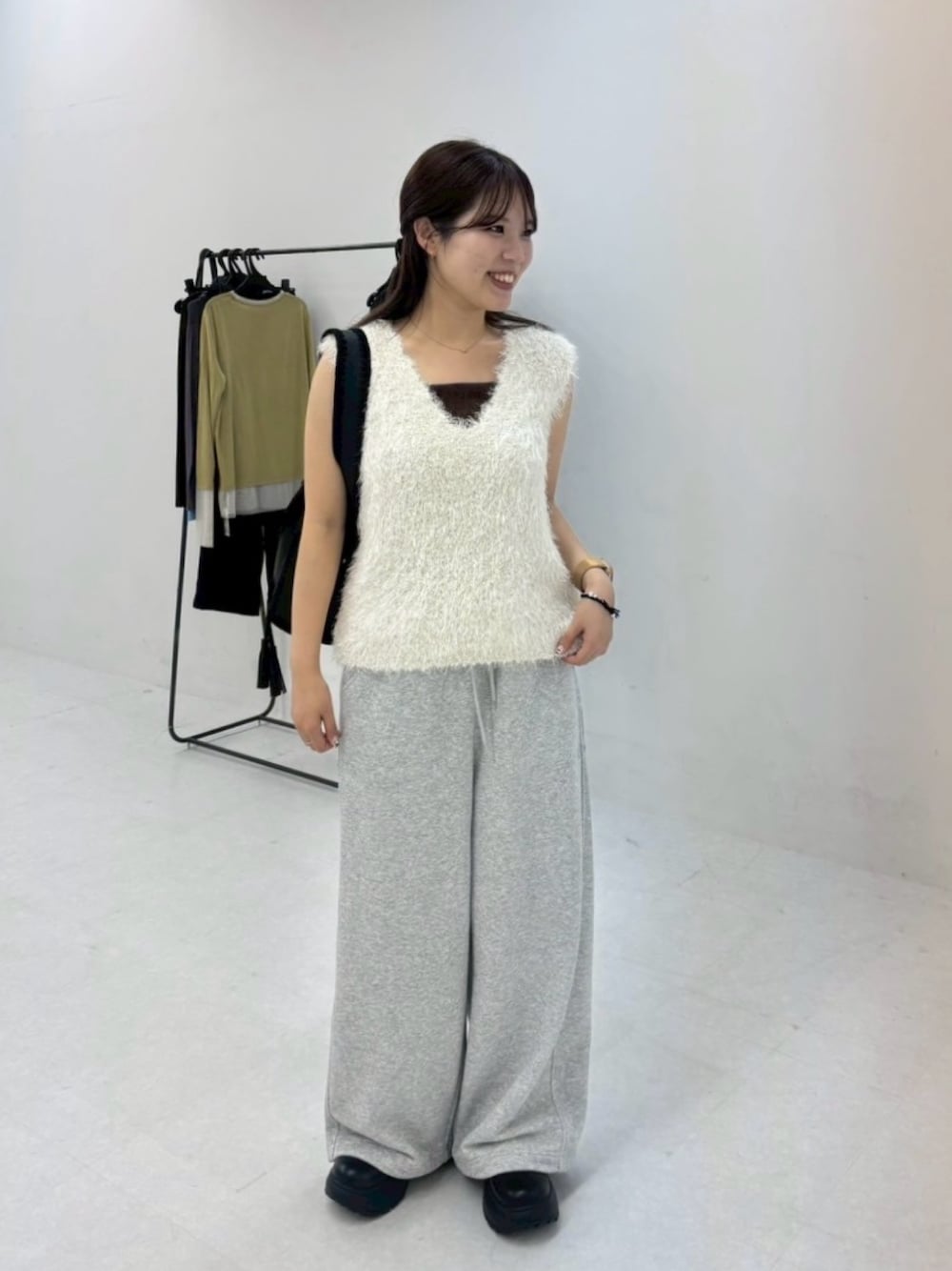 スパンコール糸/ラメ糸/フェザー糸の3種類を贅沢に織り込んだ一着◎シンプルなシルエットながら小さめのスパンコールとラメ糸がきらっと華やぐアイテムです♪シンプルなコーデのアクセントにはもちろん、長いシーズンで着用できるので今季重宝するアイテムです◎