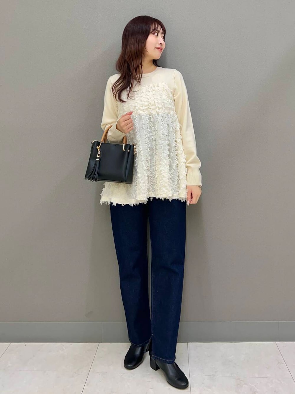 毛足の長い冬ニットはもちろん春先にはレースやシアーなど軽やかな素材とも相性抜群!季節問わずで楽しめる大人気デニムです。