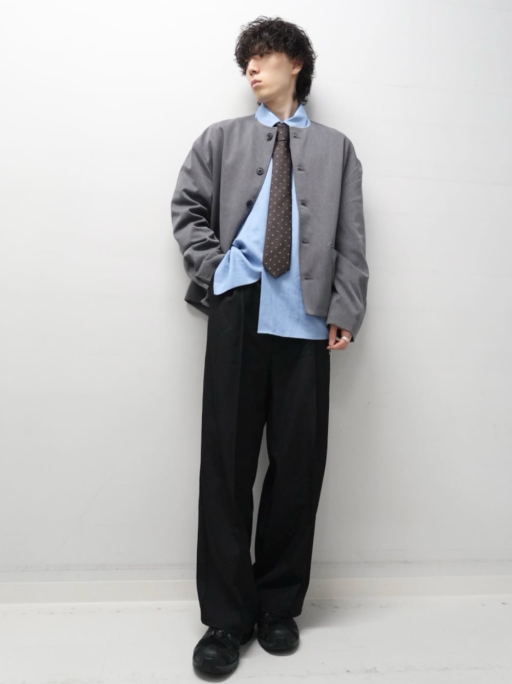 ドレープが出る微光沢の生地を使用しており、上品な印象を与えます。オールシーズン着用できる素材なので、季節を問わず様々なスタイリングで活躍します。