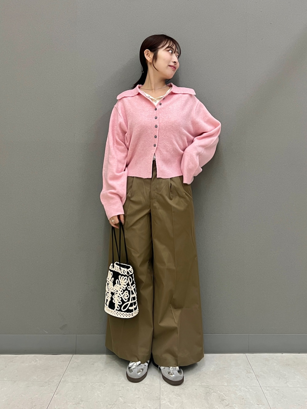 ボタンを少し開けて、抜け感のある着こなしも楽しめます。