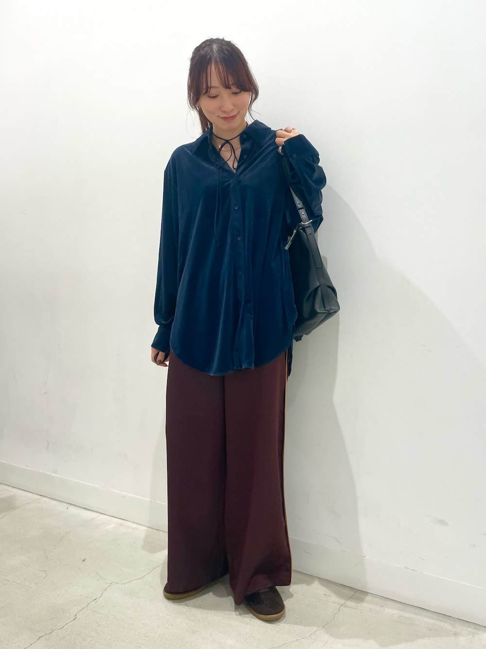 柔らかく落ち感のあるベロア素材を使用したルーズシャツ。上品な光沢感が、シンプルな着こなしを洗練された印象に格上げします。付属のサテンコードは、ウエストを絞ってスタイルアップしたり、チョーカー風に結んだりと、アレンジ次第で様々な表情が楽しめます。羽織りとしてもトップスとしても活躍する、着回し力抜群の一枚です。